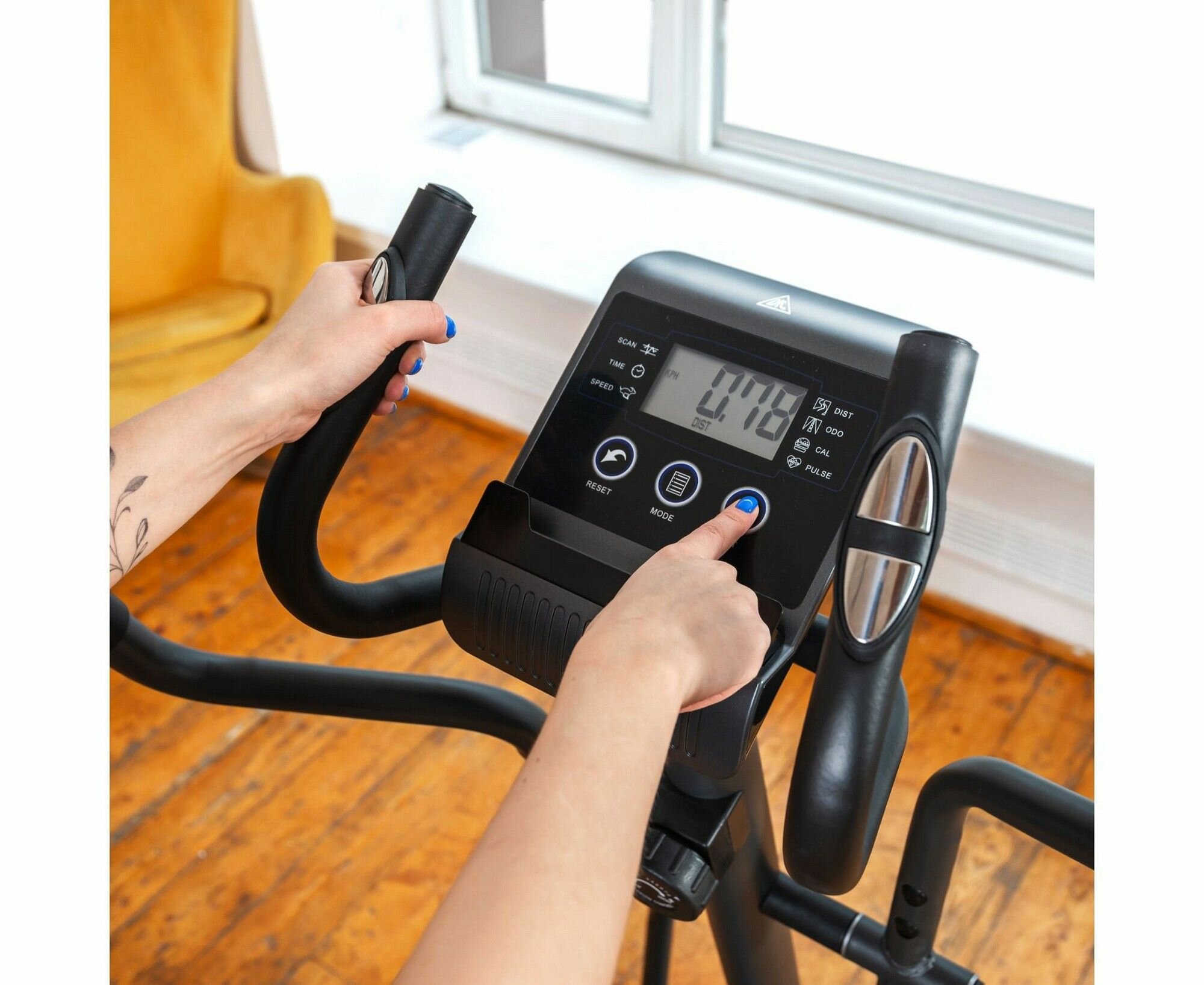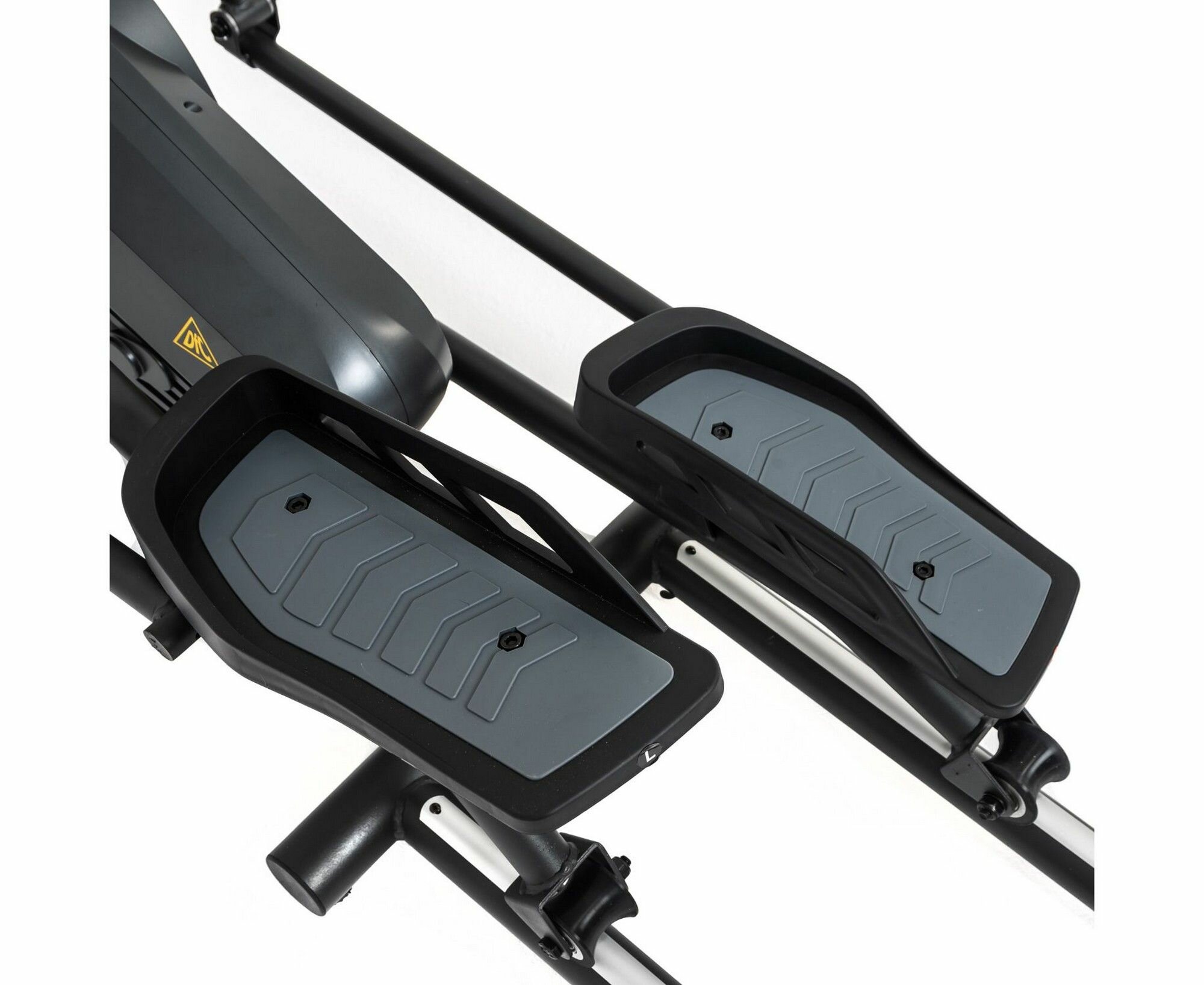 Эллиптический тренажёр — достаточно компактный, с передним маховиком весом 7 килограмм. Он идеально подходит для домашнего использования, так как сочетает доступную цену и функциональность.