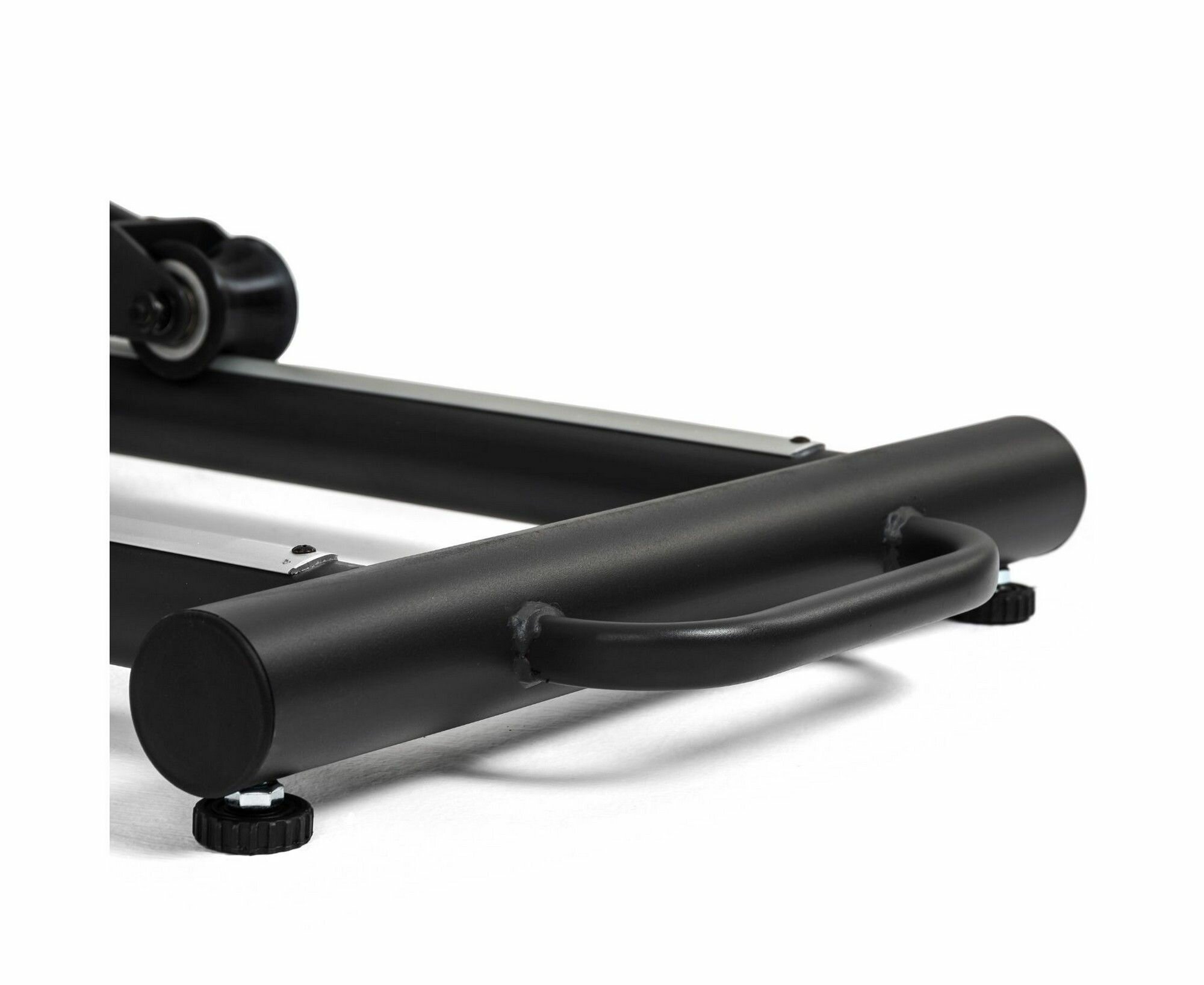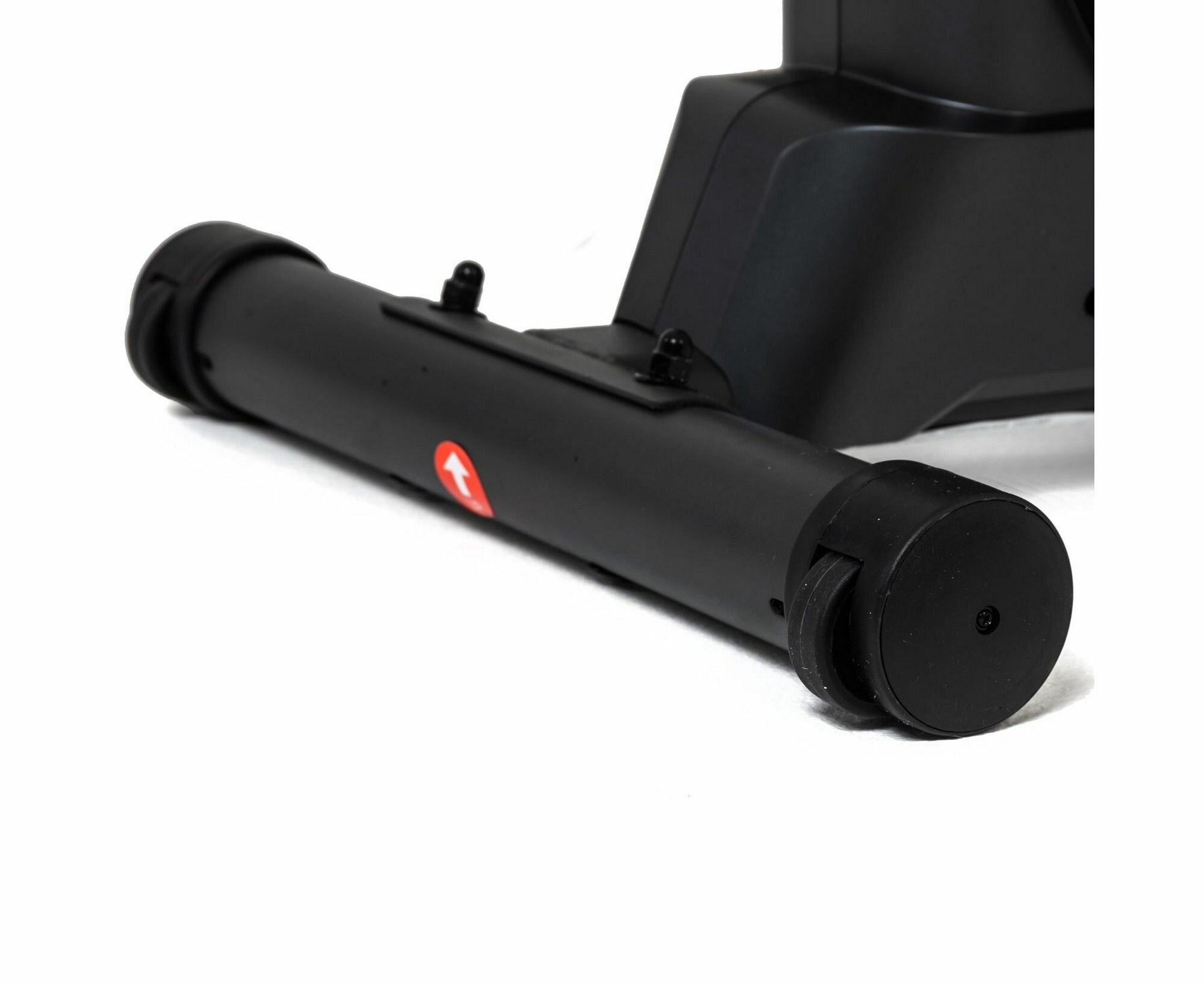 Благодаря небольшим размерам и наличию съёмных частей, тренажёр удобно хранить в квартире или доме. Для удобства транспортировки предусмотрены колёсики в передней части основания и ручка — на задней. Для перемещения достаточно поднять заднюю часть вверх.