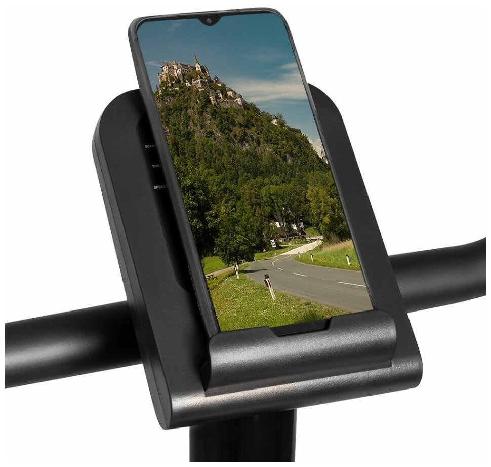 Велотренажер удобно перемещать благодаря двум транспортировочным роликам, а точное горизонтальное положение обеспечивают компенсаторы неровностей пола. Черно-белый LCD-дисплей выводит на экран различные параметры тренировки - время, дистанцию, скорость, калории, пульс.
