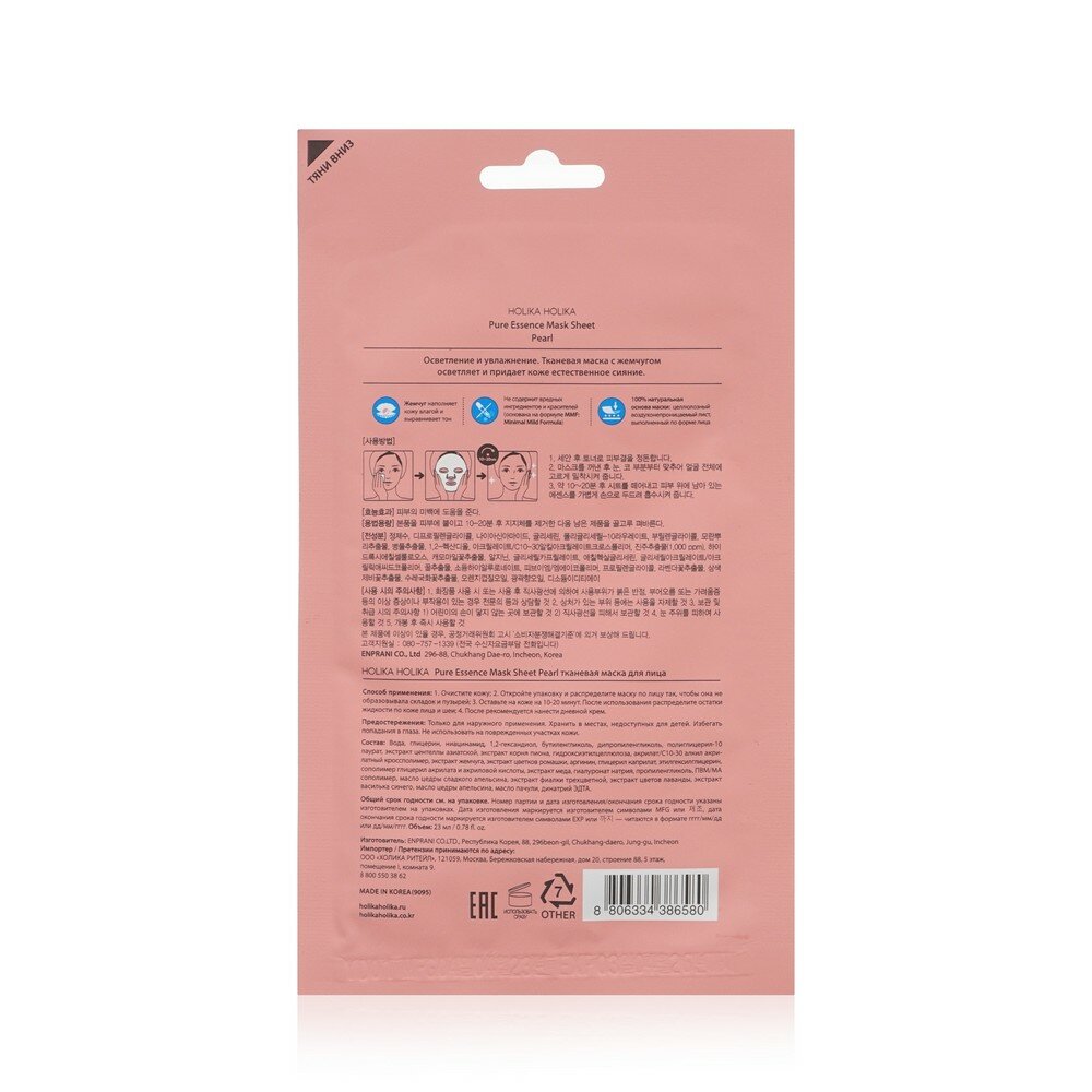 Маски Holika Holika тканевая Осветляющая Pure Essence жемчуг