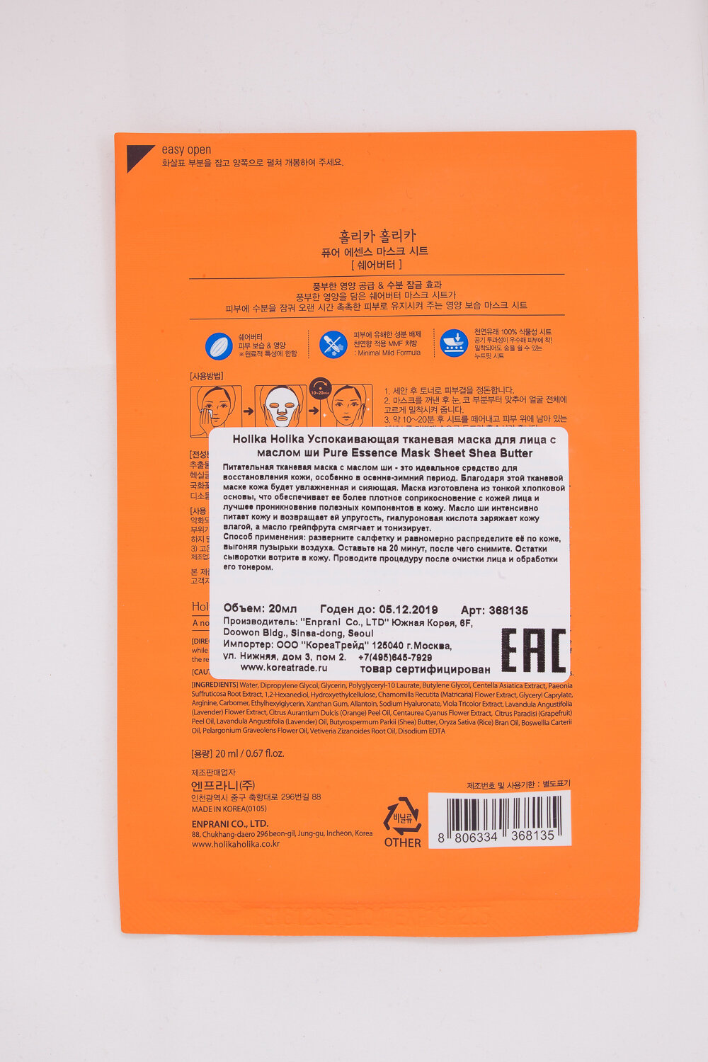 Маска Holika Holika тканевая Питающая Pure Essence с маслом ши