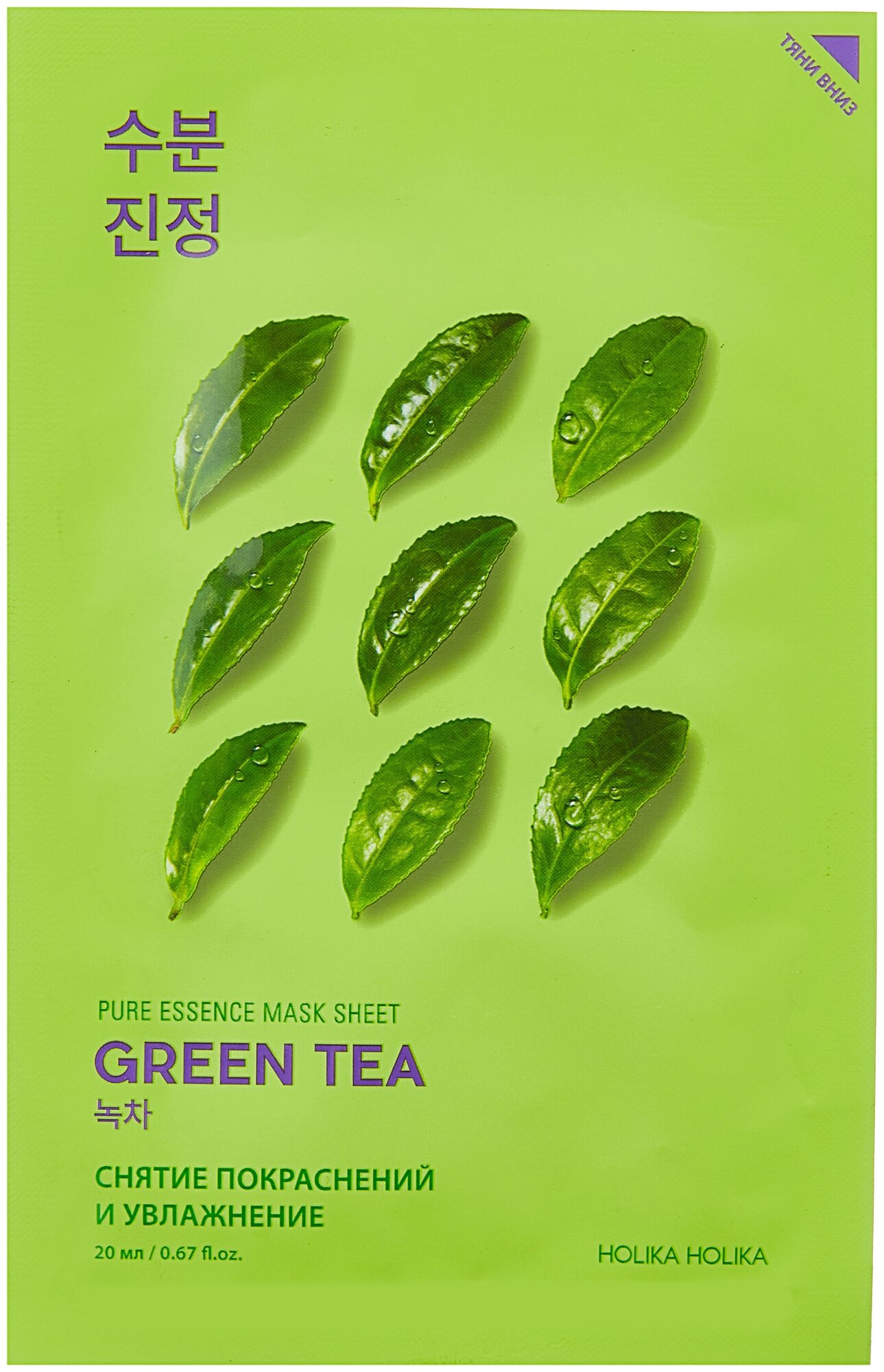 Маска Holika Holika тканевая Противовоспалительная Pure Essence зеленый чай