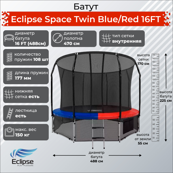 Код производителя: Батут Eclipse Space Twin Blue/Red 16FT