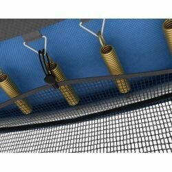 - Рабочее полотно изготовлено из перматрона — материала, легко переносящего любые погодные условия. Он отличается хорошей упругостью и долговечностью. Не боится температурных перепадов, морозов, жары, влажности и ультрафиолета. Диаметр прыжковой поверхности — 3,66 м.