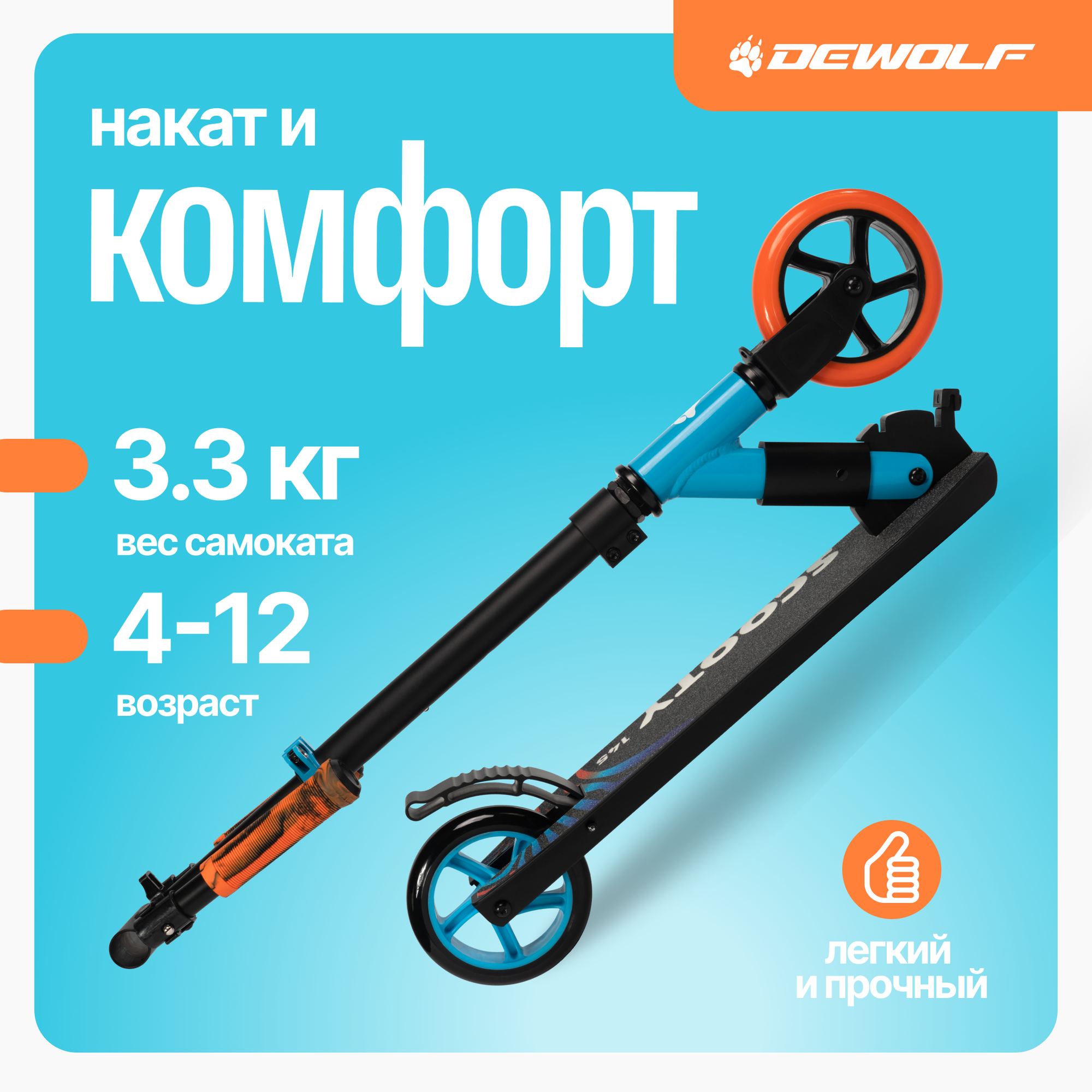 Сервис сравнения цен СкидкаГИД предлагает сравнить цены на товар «Самокат городской Dewolf SCOOTY 145 голубой»