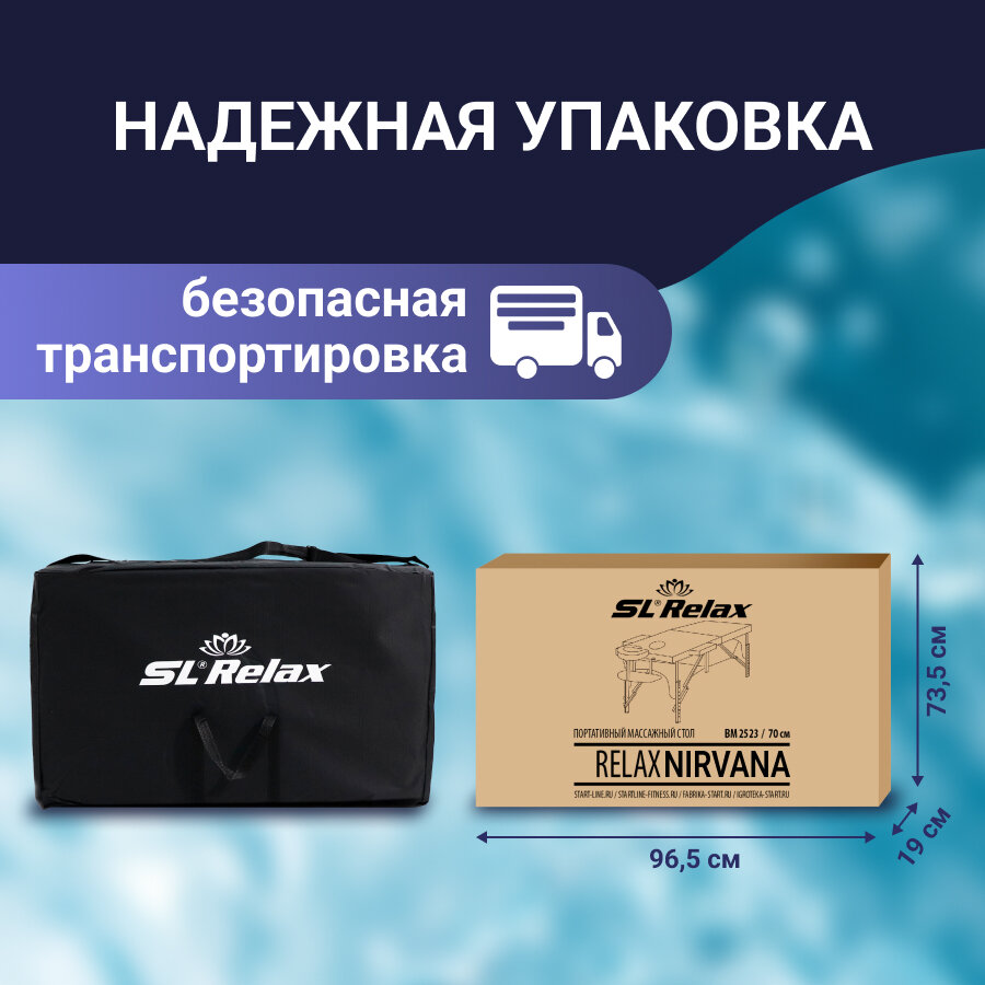 Когда сеанс массажа завершен, легко складывается до компактных размеров чемодана, что делает ее идеальным выбором для массажистов-путешественников. В комплект входит чехол для удобного хранения и безопасной транспортировки.