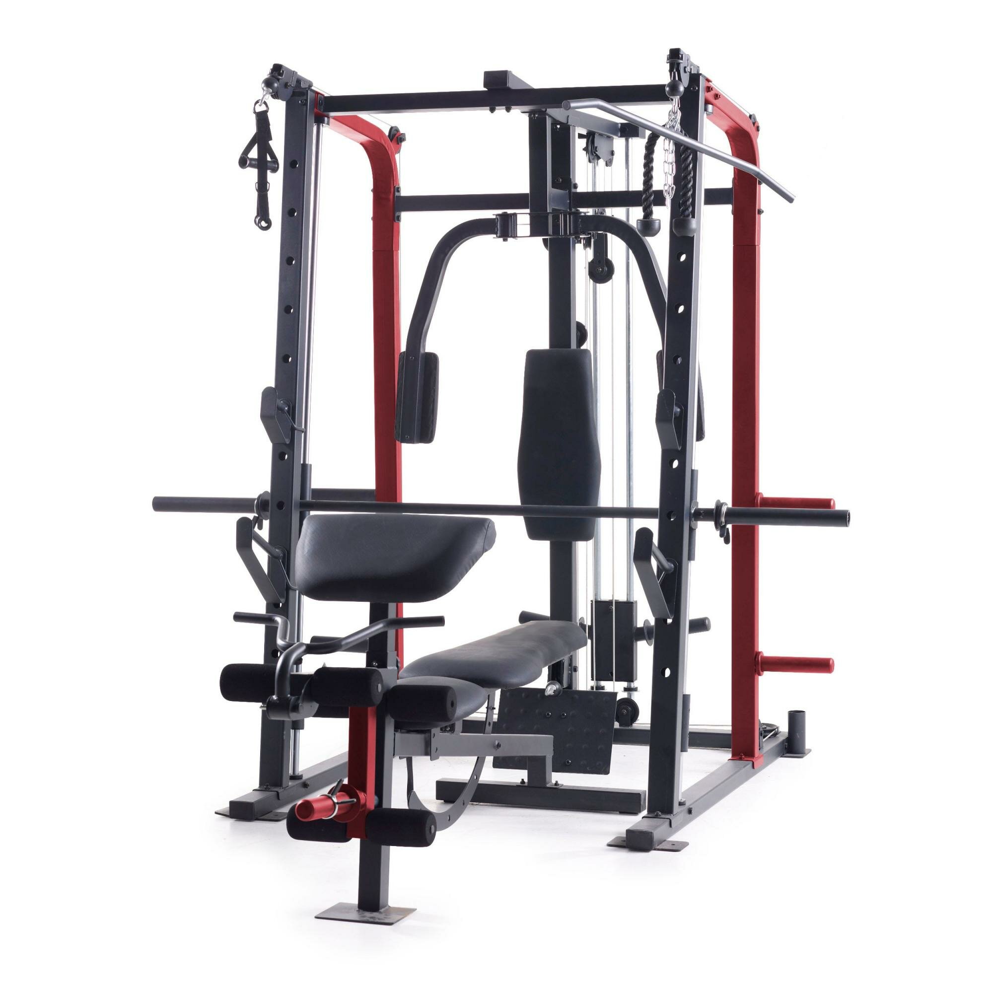 Тренажер предназначен для выполнения различных силовых упражнений: Машина Смита, тяга сверху / снизу, баттерфляй, парта для бицепса, сгибание / разгибание, жим лежа на скамье дополнительной штанги (штанга и диски опция).