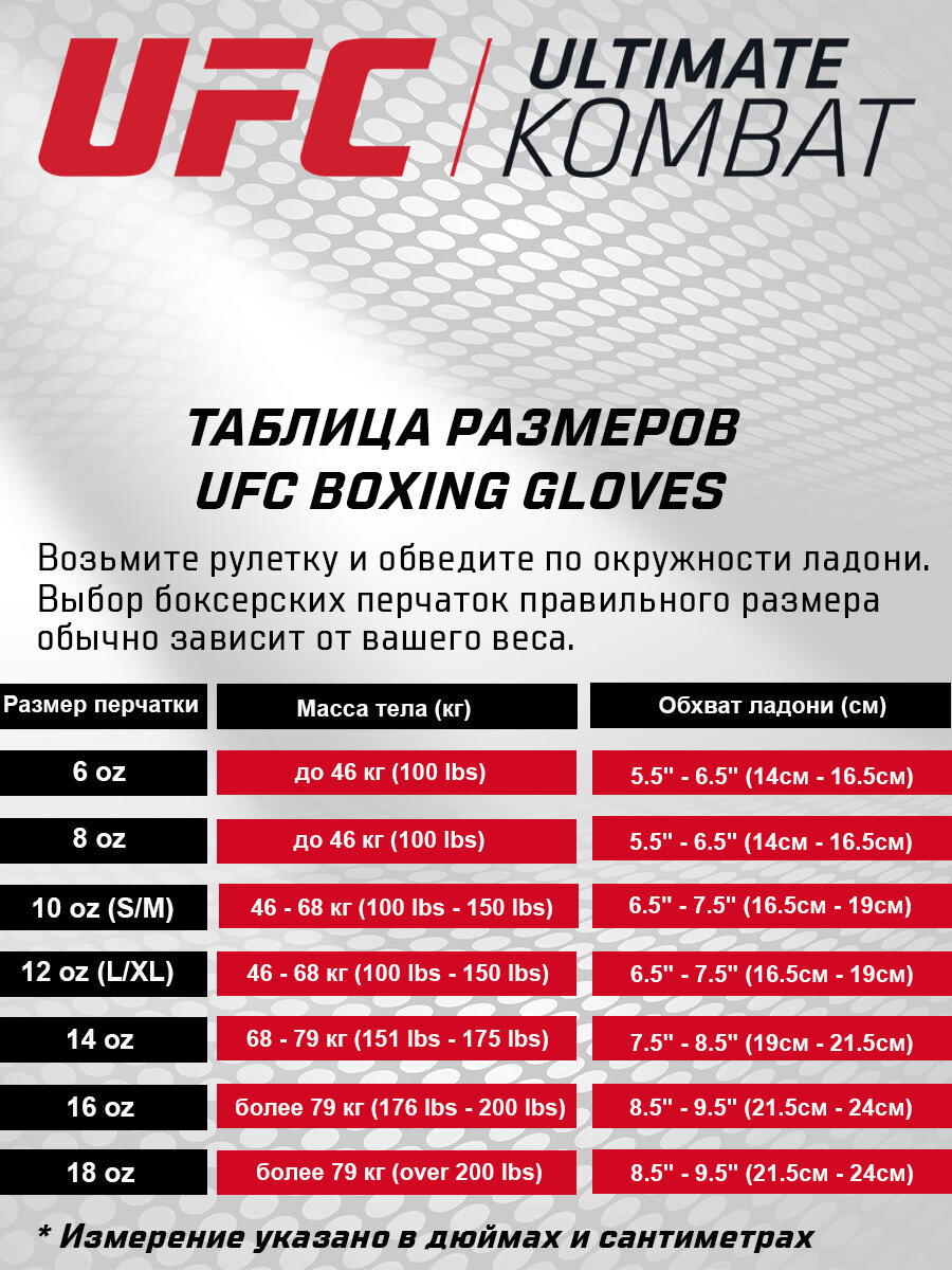 Достигните предельной грани своих возможностей с перчатками UFC. Эти универсальные высококачественные боксерские перчатки идеально подходят для спарринга, работы с мешком и лапами. Цельная формованная пена обеспечивает максимальную защиту и имеет сужение в области запястья, создавая компактную, но довольно эффективную форму. Перчатки изготовлены из из прочного материала ПВХ толщиной 8 мм с вентиляционным отсеком из сетки, который позволяет оставаться рукам сухими и прохладными. Анатомически продуманная конструкция перчаток UFC обеспечивает максимально удобное прилегание к руке. Дополнительный слой прокладки на ладони создает комфорт и надежную поддержку запястья руки. Большой палец и ладонь усилены двойным сшитым ремешком, который предотвращает смещение во время тренировки. Эта модель идеально подходит для спарринга.