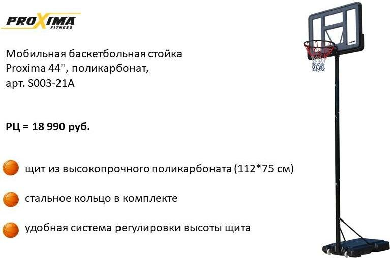 Мобильная баскетбольная стойка Proxima 44" поликарбонат S003-21