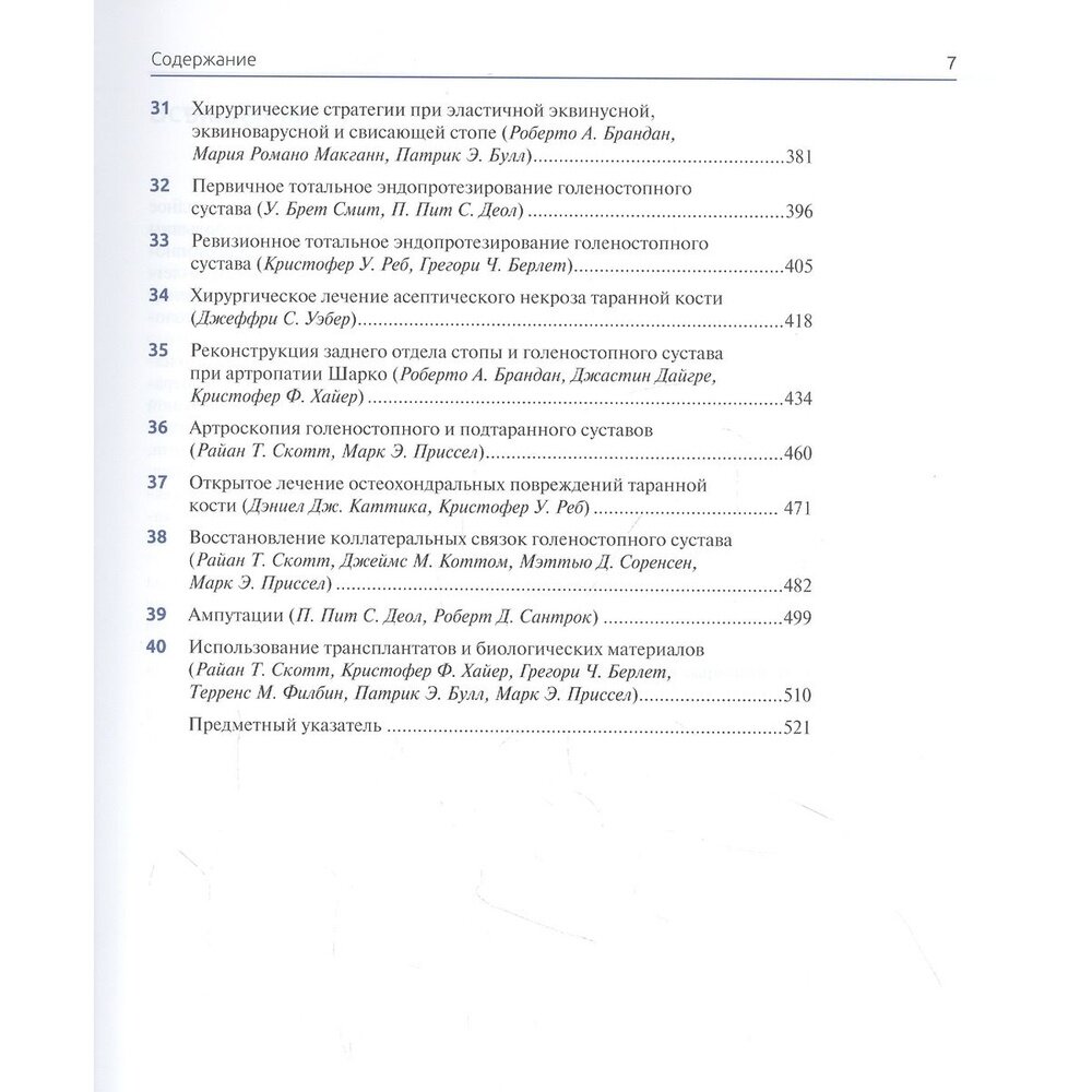 В богато иллюстрированном издании можно найти информацию практически по всем основным разделам оперативного лечения заболеваний и последствий травм стопы, начиная с вмешательств на сухожильно-связочном аппарате и заканчивая артродезированием и эндопротезированием ее суставов.