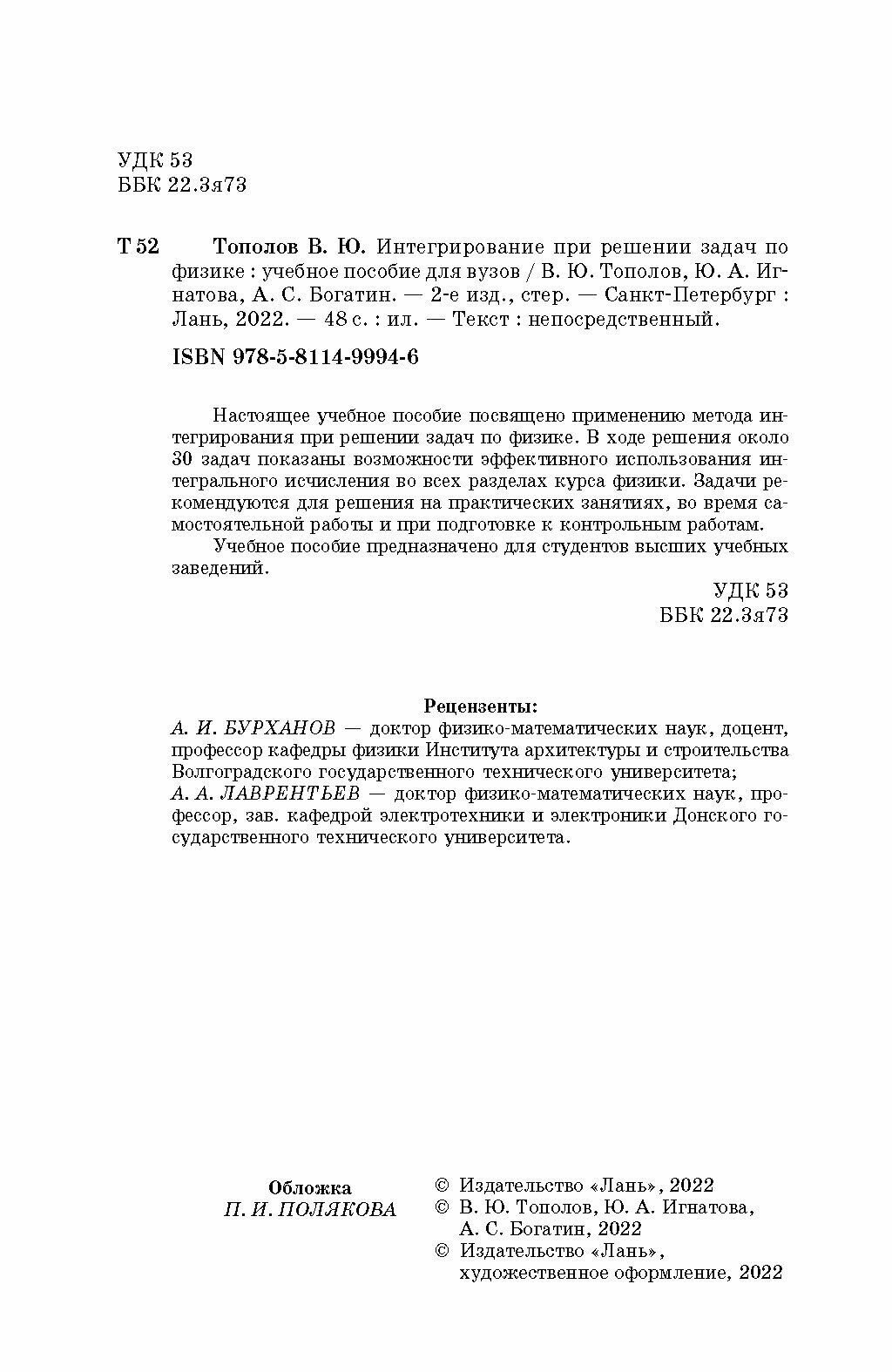 Интегрирование при решении задач по физике учебное пособие для вузов (Тополов В.Ю., Игнатова Ю.А., Богатин А.С.); Лань, 2022