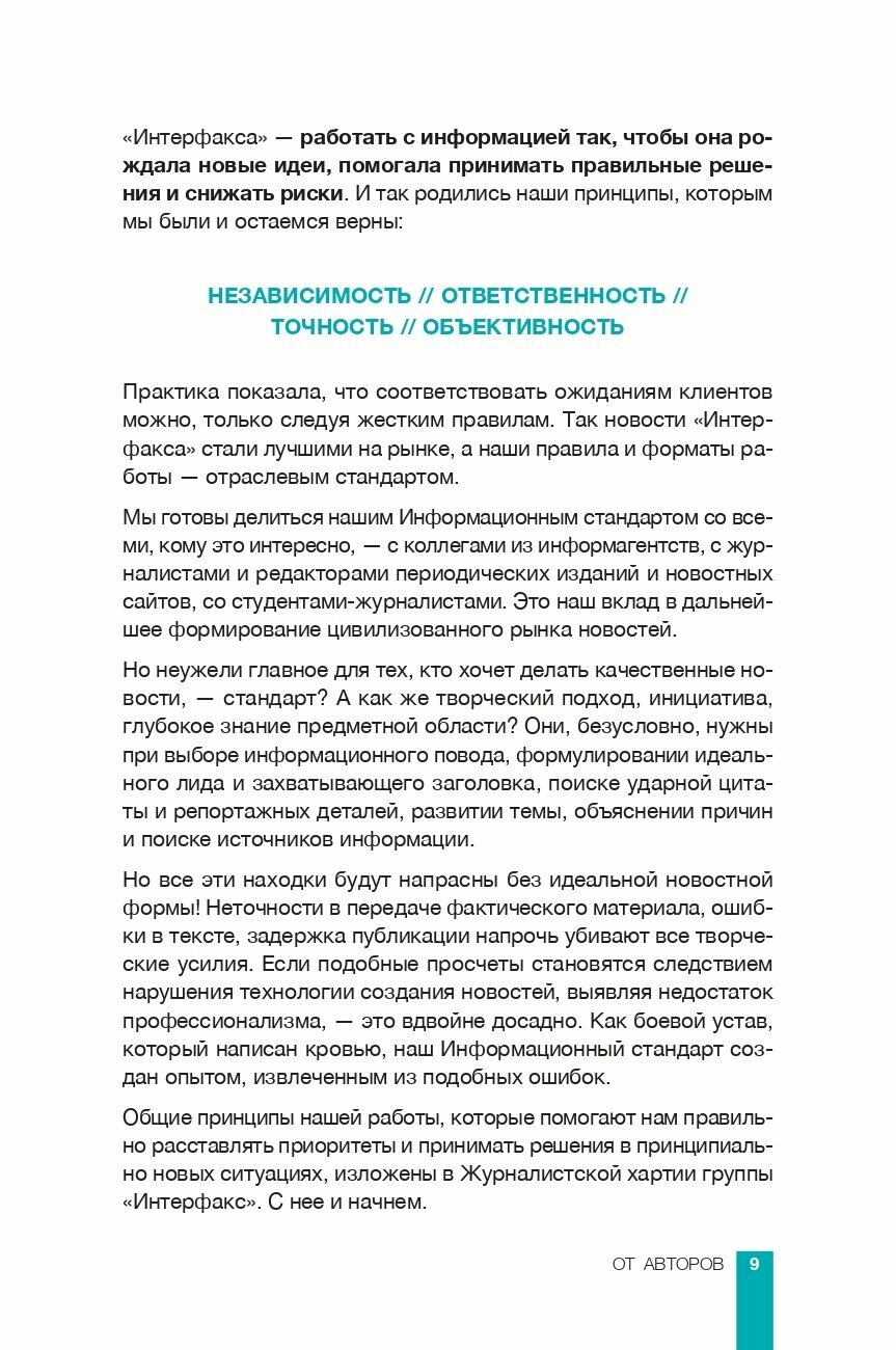 Эта книга о том, чем «новости Интерфакса» отличаются от «просто новостей». Как создаются, проверяются и выпускаются сообщения в ведущем федеральном информационном агентстве России. О том, что позволяет его репортерам видеть за происходящим именно новость и рассказывать читателям не просто о событии, но и о его значении и последствиях.