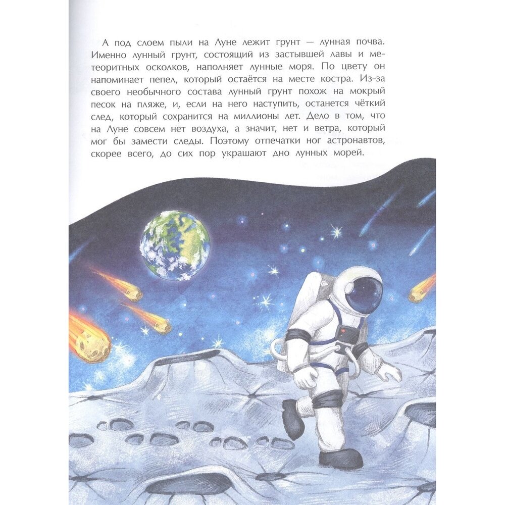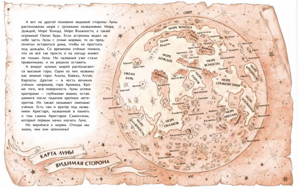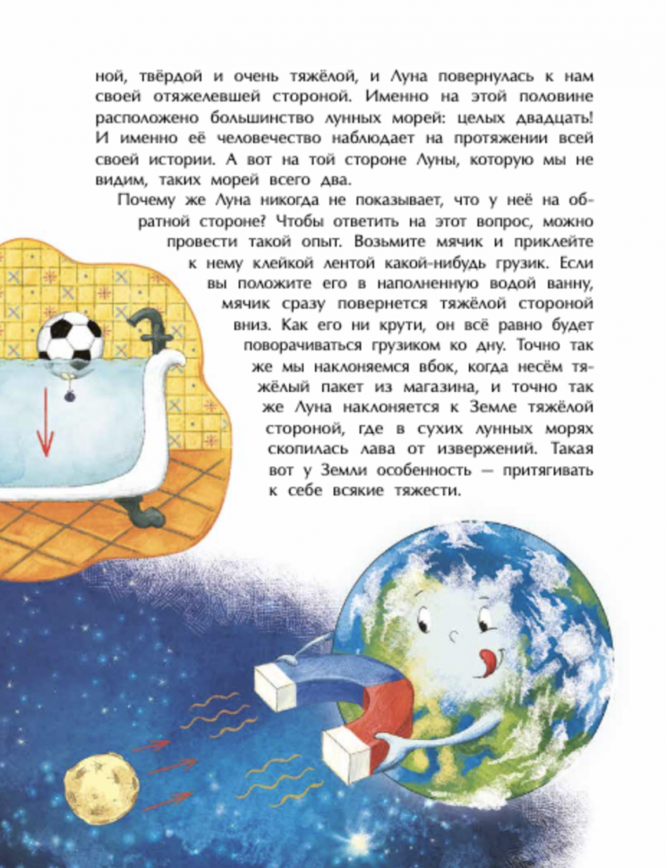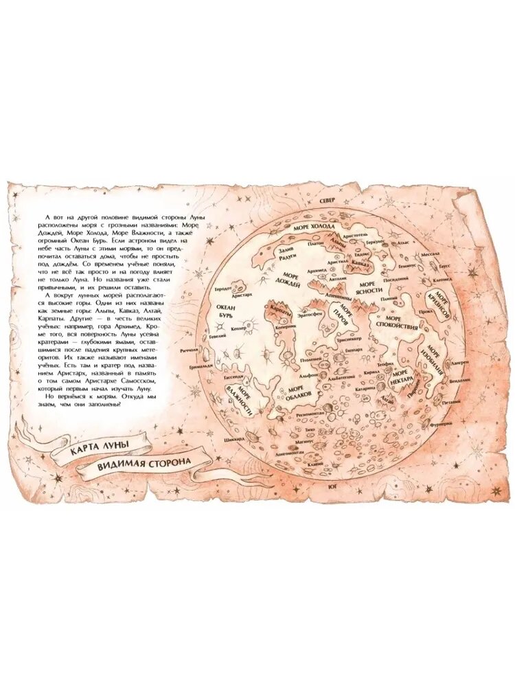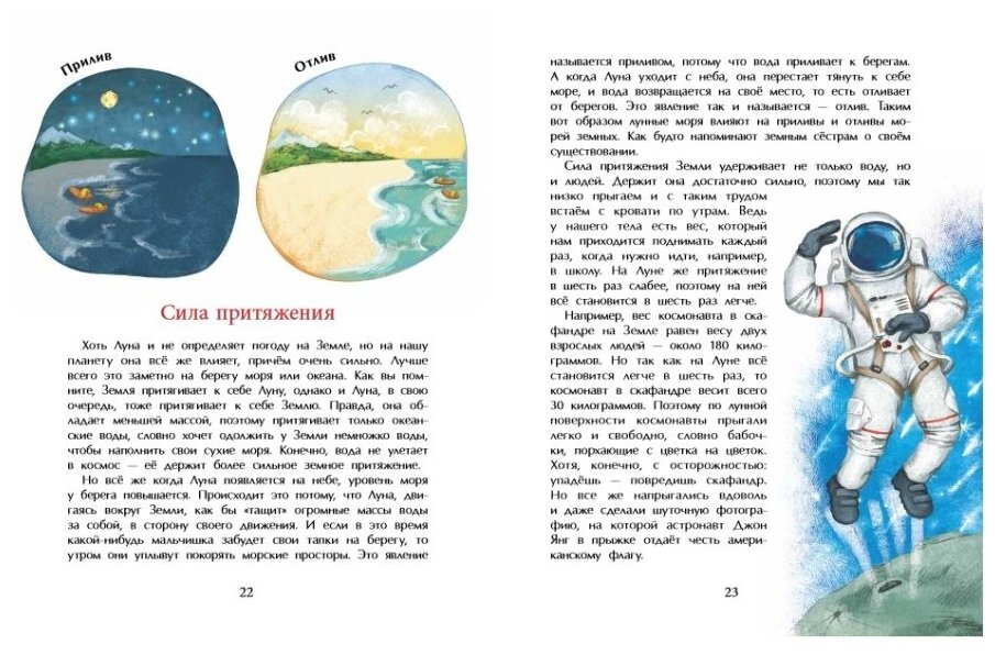 Стыдно признаться, но мне, 35-летней женщине с двумя высшими образованиями, только после прочтения этой книги стало понятно, почему и как происходят морские приливы и отливы)))) И помимо этого в этой тоненькой книжице очень много полезной и интересной информации. У нас есть отдельная энциклопедия про космос, но в ней нет таких подробностей об изучении луны, карты лунной поверхности и т.д.