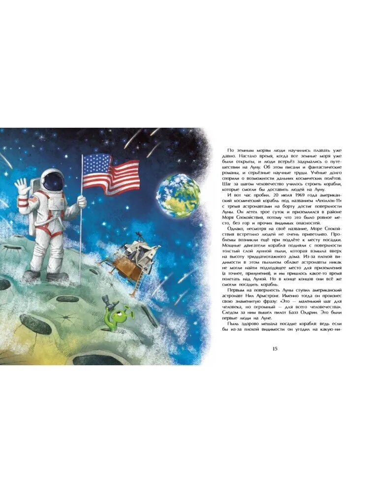 В книге рассказывается о расстоянии от Земли до солнца, почему светится луна, о том, что мы видим Луну с одной стороны и почему не видим вторую сторону. Описывается, как американский корабль сел на Луну. Дети узнают из чего состоит Луна, получат информацию о луноходах. Почему бывают отливы и приливы. Информации много, картинки яркие. Я покупаю все книги серии Насти и Никиты. Ждём новые, а также переизданные вновь.
