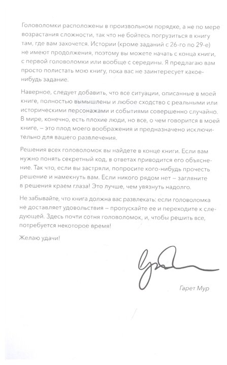 Очень занимательная книга, которая точно поможет вам отключится от реальности на некоторое время. Головоломки не повторяются, имеют какую-то свою особую изюминку, от того решать их одно удовольствие. Сзади есть ответы, можно проверить тем самым себя и свое умение размышлять логически.