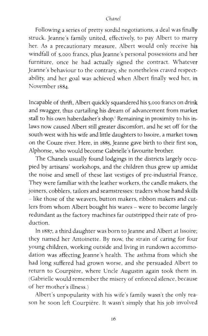она должна быть комфортной и позволять полноценно жить. А секрет, согласно Коко, в простоте. Темные оттенки, знаменитое "маленькое ченое платье". Этого вполне достаточно. Ну и, наконец, кто не знает и не любит Chanel No. 5? Автором проведено глубокое историческое исследование, что не может не вызывать уважение. Книга, насколько я знаю, переводилась и на русский