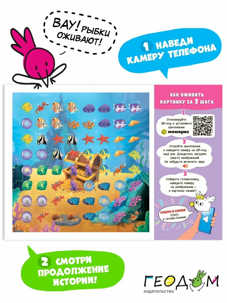 Любимые фигурные пазлы Fluff-Puzzle – теперь в формате головоломки «Тетрис»! Правильно сложи все фрагменты – и окунись в подводный мир! Яркие рыбки, морские коньки и коралловые рифы – наблюдай за жителями океана в своём телефоне. Отсканируй QR-код, наведи камеру на изображение – и картинка со звуком оживёт! Наблюдай за жизнью обитателей подводного мира с новым фигурным пазлом с дополненной реальностью «В океане». Пазл тренирует мелкую моторику, внимание, память и способствует развитию образного мышления.