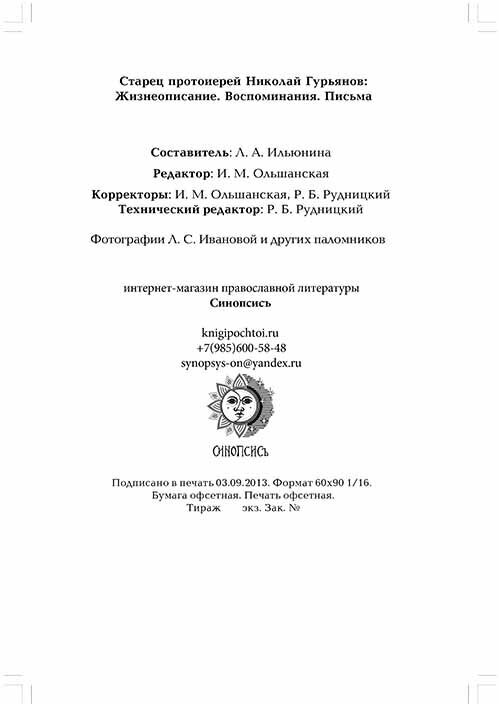 Старец протоиерей Николай Гурьянов: Жизнеописание. Воспоминания. Письма (Ильюнина Людмила Александровна); Синопсисъ, 2022