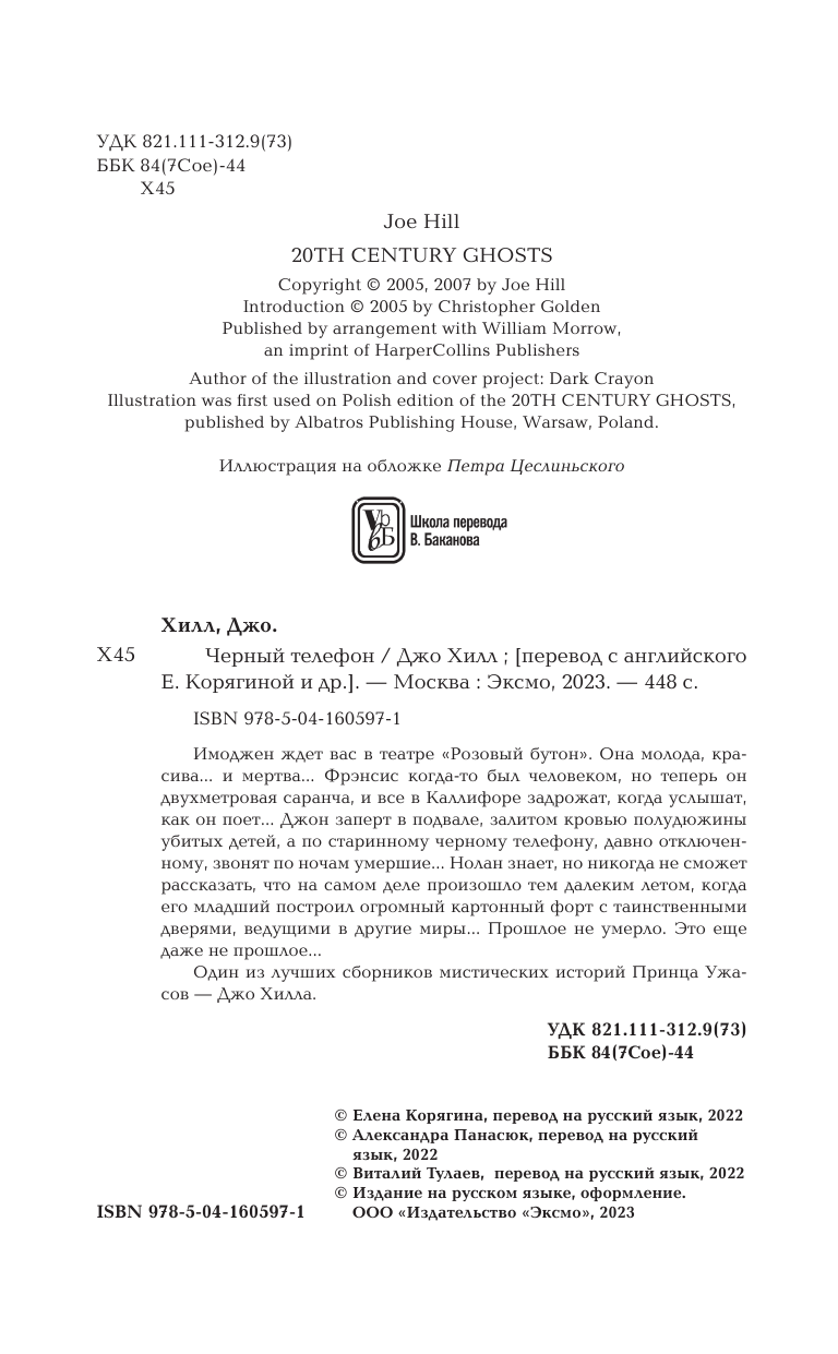 Книга: Черный телефон (Джо Хилл); Эксмо, Fanzon, Редакция 1, 2022