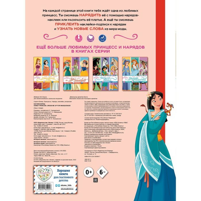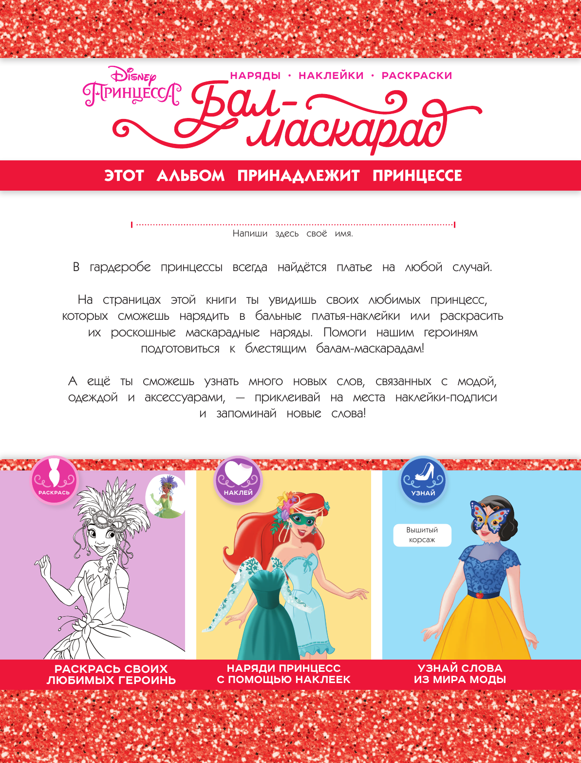 Disney. Принцессы. Бал-маскарад (наряды наклейки раскраски) (Саломатина Елена Ивановна (редактор)); ООО "Издательство "Эксмо", 2022