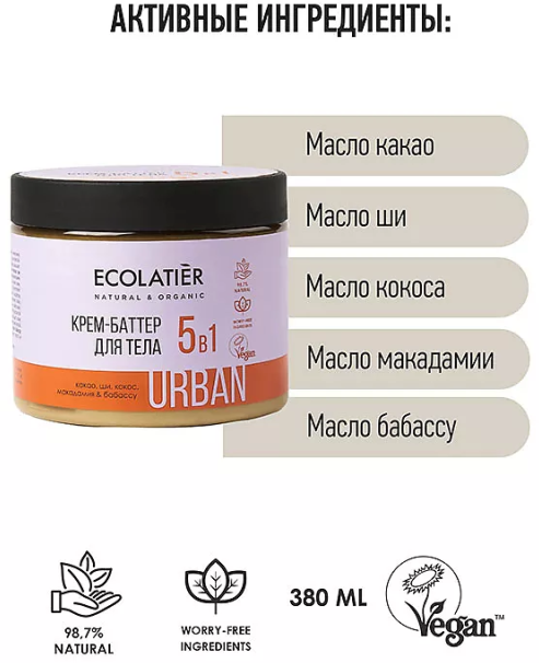 Крем -баттер для тела 5 в 1 какао ши кокос макадамиябабассу Ecolatier 380 мл ООО ЭкоЛаборатория (1586980)