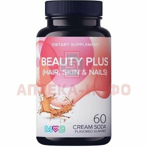 LIVS BEAUTY PLUS - создан для поддержания естественной красоты кожи, волос и ногтей. Вкусный витаминно-минеральный комплекс в мармеладных пастилках со вкусом крем-сода, для взрослых, премиального качества. Проходит строжайший контроль качества и соответствует международным стандартам: FDA, GMP, ISO, HACCP. Компоненты комплекса способствуют:- Повышению упругости и эластичности кожи- Замедлению процессов клеточного старения - Укреплению волосяной луковицы и более быстрому росту волос- Жизненной силе, блеску и сиянию волос- Ускорению роста ногтей и укреплению ногтевой пластины. Преимущества комплекса: - Нежные мармеладные пастилки со вкусом крем-сода- Натуральные красители: экстракт черной моркови и бета-каротин- Не содержит потенциальных аллергенов и ГМО- Не содержит глютен - На основе пектина (легко разжевывается) и сиропа тапиоки- Подходит вегетарианцам - Сертифицирован Кошер и Халяль - Произведен в Израиле. Содержание в 2 мармеладных пастилках:Витамин С - 20 мг (33%*), витамин А - 0,63 мг (78,75%*), витамин D3 - 10 мкг (400 МЕ) (200%*), витамин Е - 11 мг (110%*), витамин В6 - 2 мг (100%*), витамин В12 - 6 мкг (600%*), фолиевая кислота (фолат) - 260 мкг (130%*), биотин (d-биотин) - 150 мкг (300%*), пантотеновая кислота - 5,2 мг (86,6%*), йод - 42 мкг (28%*), цинк - 2,7 мг (18%*). *% рекомендуемого уровня потребления в день. Количество в банке: 60 штук, на 30 дней приема. Противопоказания:Индивидуальная непереносимость компонентов, беременность, кормление грудью. Перед применением рекомендуется проконсультироваться с врачом.БАД не является лекарственным средством.
