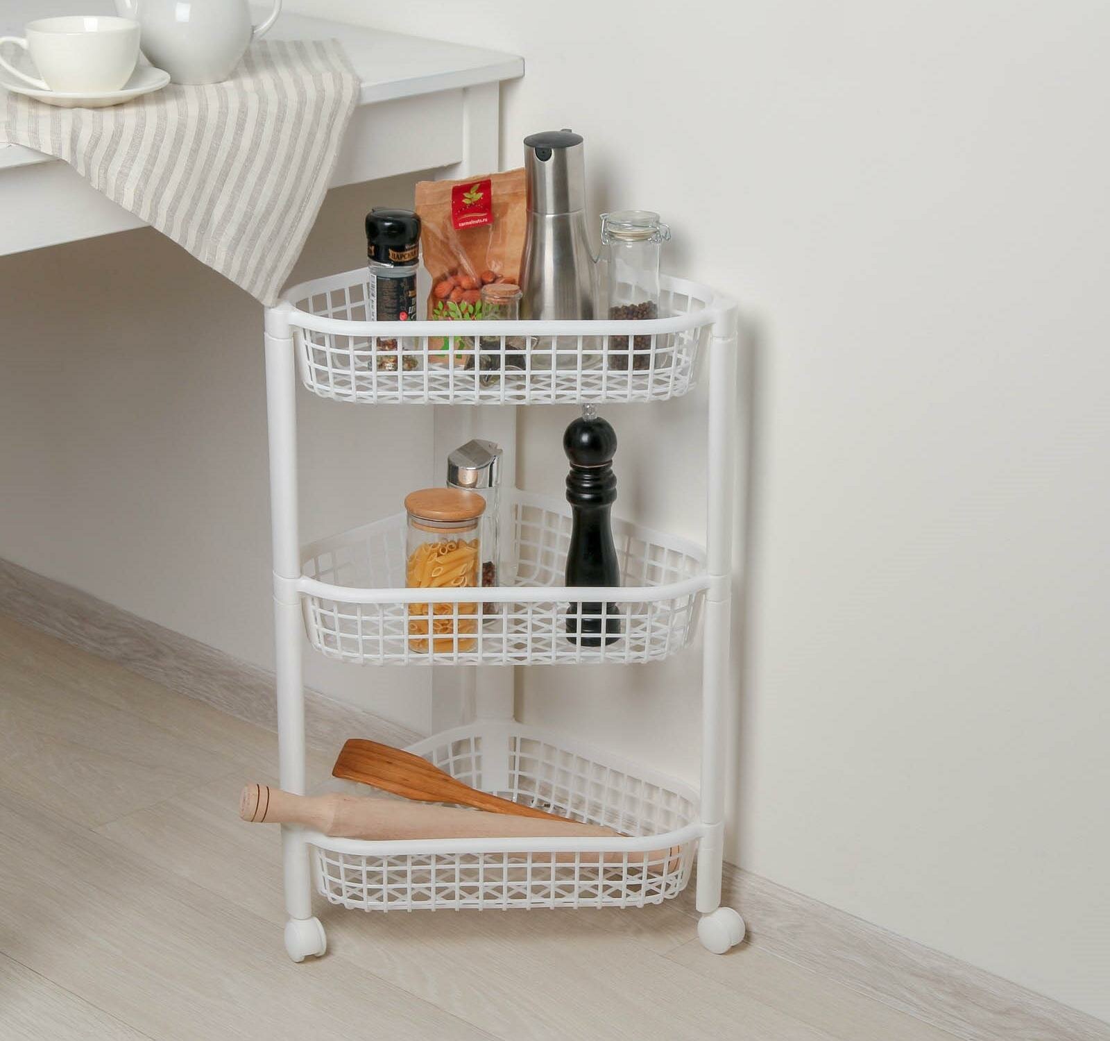 полка угловая евро на колесах 3 секции белый м2756 М-Пластика