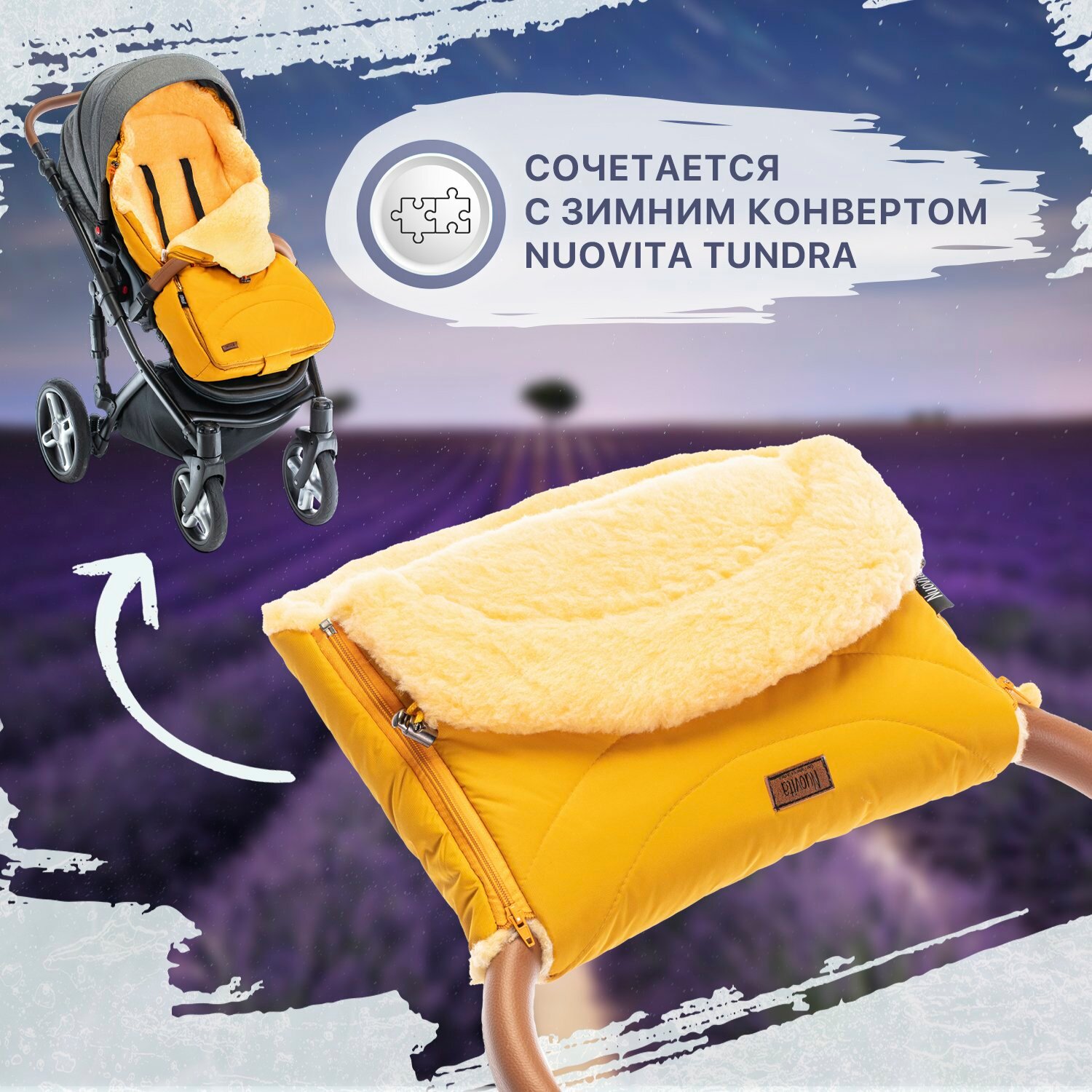 Меховая муфта NUOVITA TUNDRA — нарядный, комфортный аксессуар для коляски, благодаря которому руки родителей будут защищены от холода во время прогулок с ребенком. Данная модель подходит для всех типов колясок и санок, имеющих сплошную ручку. Внутренняя часть сделана из пушистого меха, который представляет собой смесовую овечью шерсть на текстильной основе. Высота меха 12 мм, он дарит коже ощущение мягкости и комфорта, а объемный воздушный слой отлично удерживает теп