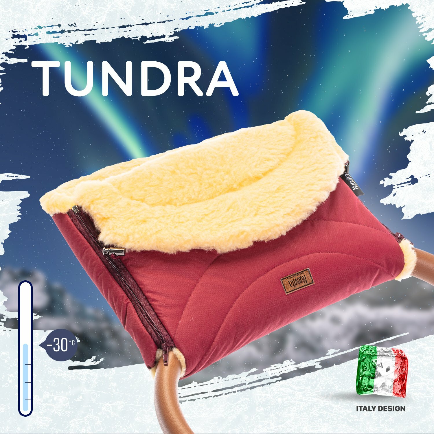 Меховая муфта NUOVITA TUNDRA — нарядный, комфортный аксессуар для коляски, благодаря которому руки родителей будут защищены от холода во время прогулок с ребенком. Данная модель подходит для всех типов колясок и санок, имеющих сплошную ручку. Внутренняя часть сделана из пушистого меха, который представляет собой смесовую овечью шерсть на текстильной основе. Высота меха 12 мм, он дарит коже ощущение мягкости и комфорта, а объемный воздушный слой отлично удерживает теп