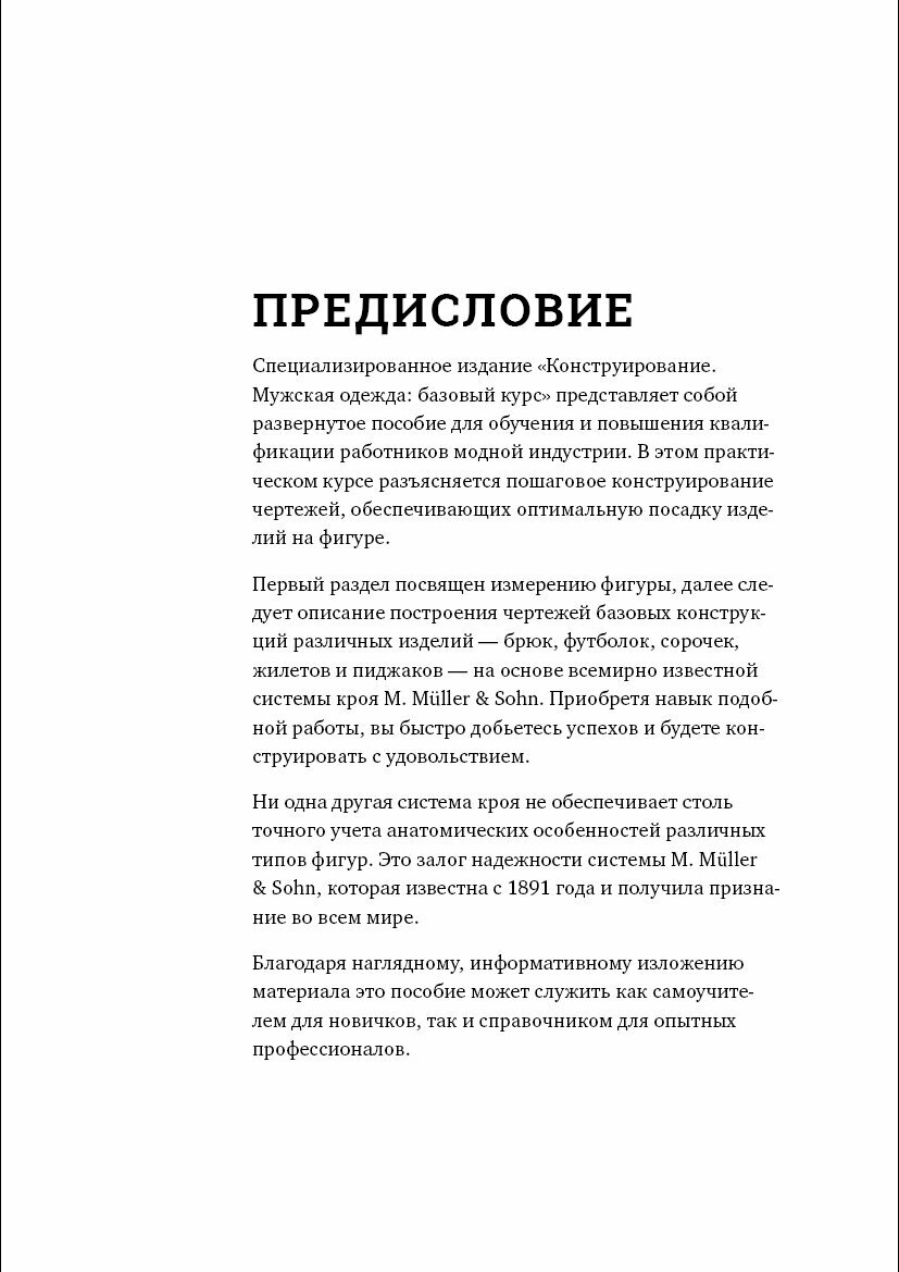 «Конструирование. Мужская одежда: базовый курс» — это практическое пособие для обучения и повышения квалификации работников модной индустрии. Пошаговые инструкции на основе системы кроя М. Muller & Sohn позволят построить чертежи базовых конструкций различных изделий: брюк, футболок, сорочек, жилетов и пиджаков с оптимальной посадкой на фигуру.