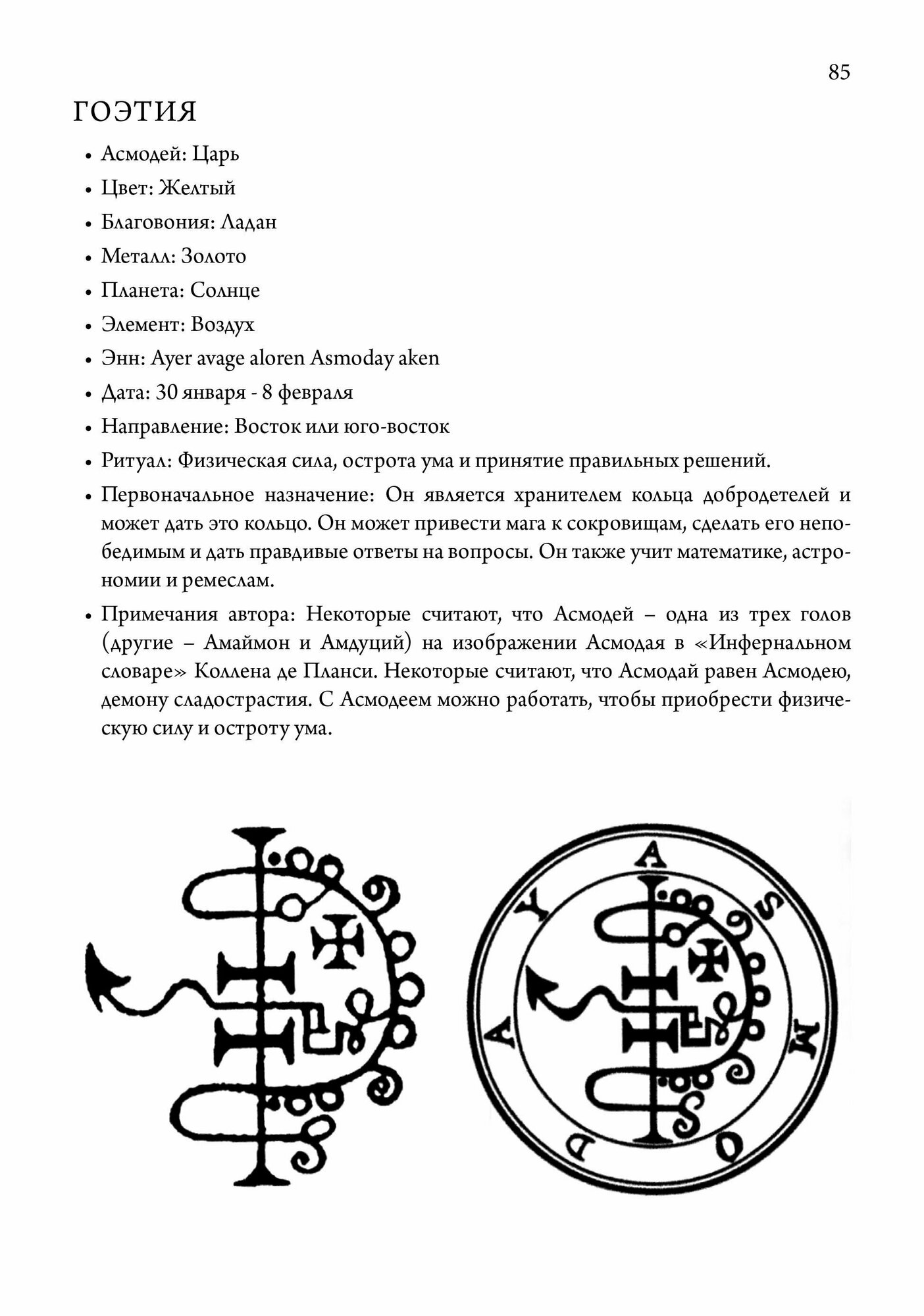 Асмодей. Демон вожделения, страсти и боли. Один из самых древних демонов, чье упоминание встречается еще в ветхозаветных апокрифах, а по некоторым версиям, даже в раннем зороастризме. Эта книга представляет собой сборник современных гримуаров, повествующих о работе самых разных черных магов с Асмодеем.