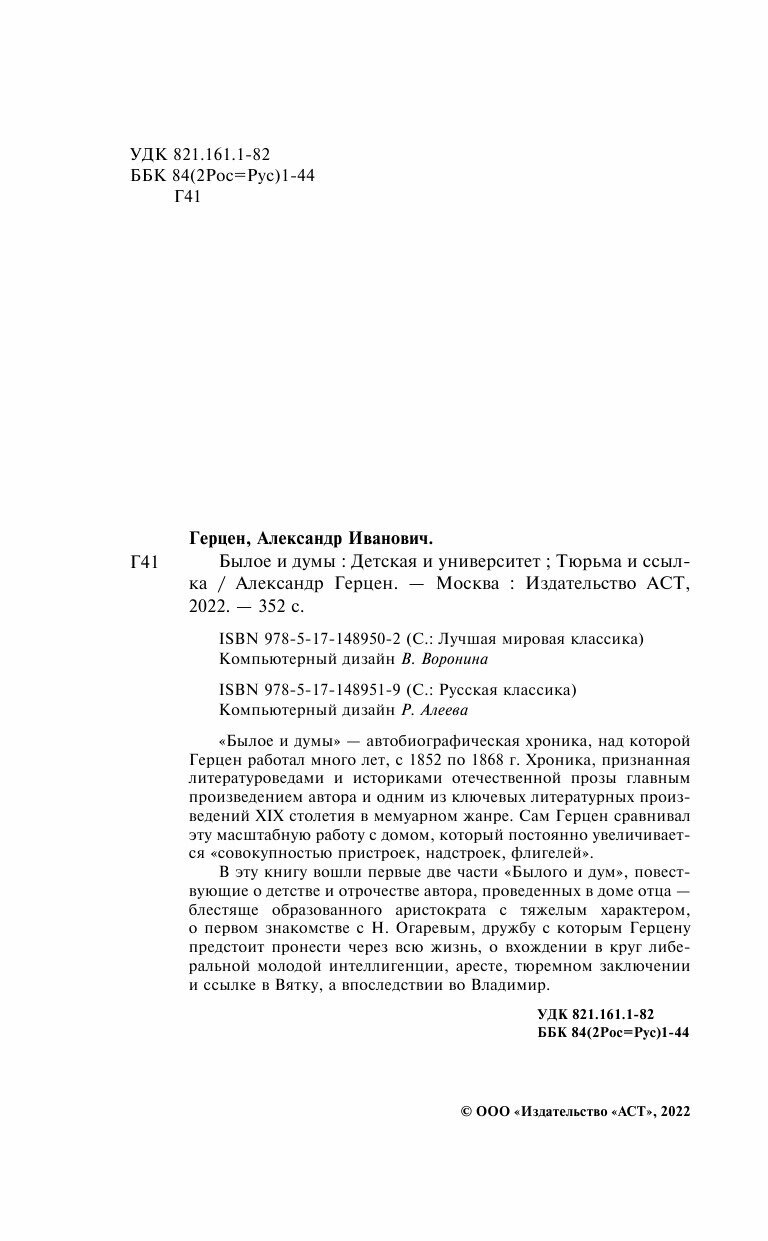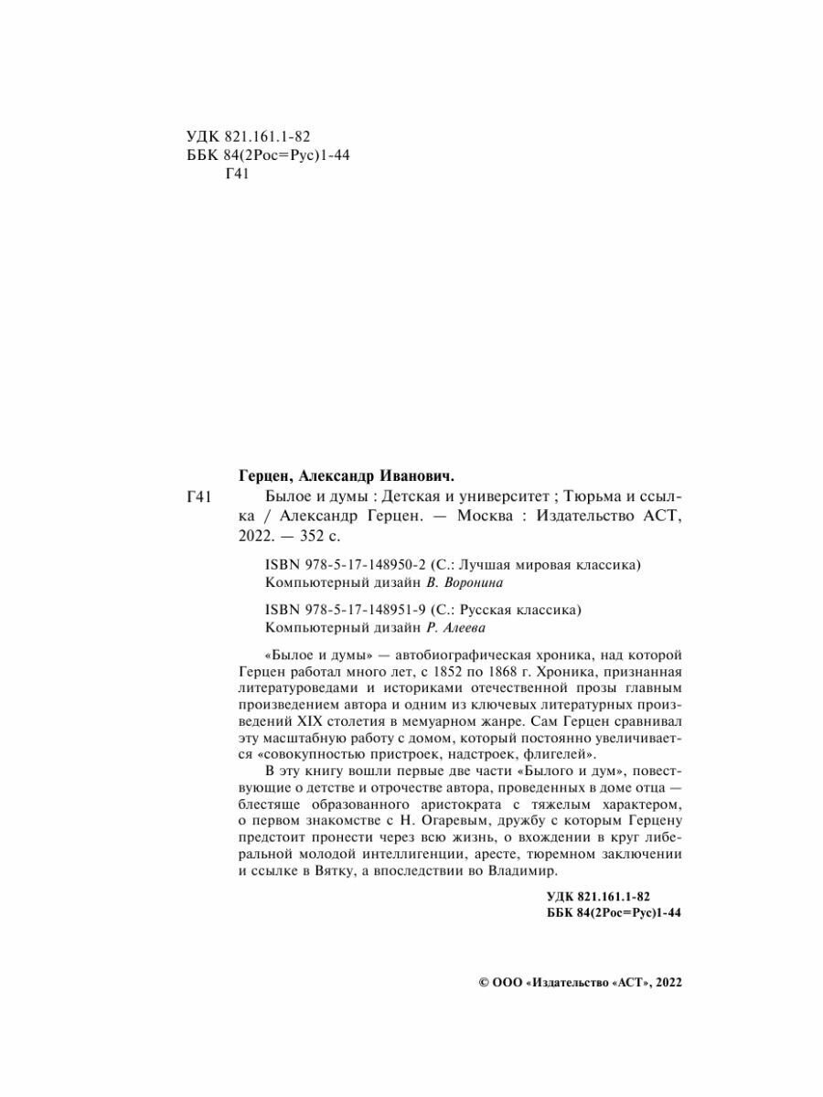 Былое и думы. Детская и университет. Тюрьма и ссылка (Александр Герцен); Издательство АСТ, 1852-1868