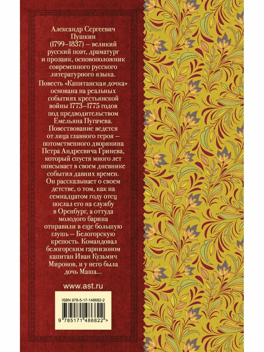 Еще один шедевр русской литературы и красивом и доступном по цене издании! Перечитать во взрослом возрасте весьма желательно! Воспринимается совершенно по другому. Пушкин удивительно тонко умел передать переживания первой любви, красоты окружающей природы, холодящий трепет перед русским бунтом. Книга очень красивая и с удобным шрифтом для чтения школьниками.