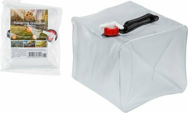 Складная канистра для воды с краном 15л ТМ ARIZONE предназначена для перевозки и хранения жидкостей в условиях похода или дальней поездки на автомобиле. Конструкция канистры позволяет компактно складывать её, а при необходимости заливать до 15 л жидкости. Надёжная пластиковая ручка для удобства переноски. Благодаря удобной крышке с краном канистра может использоваться как умывальник.