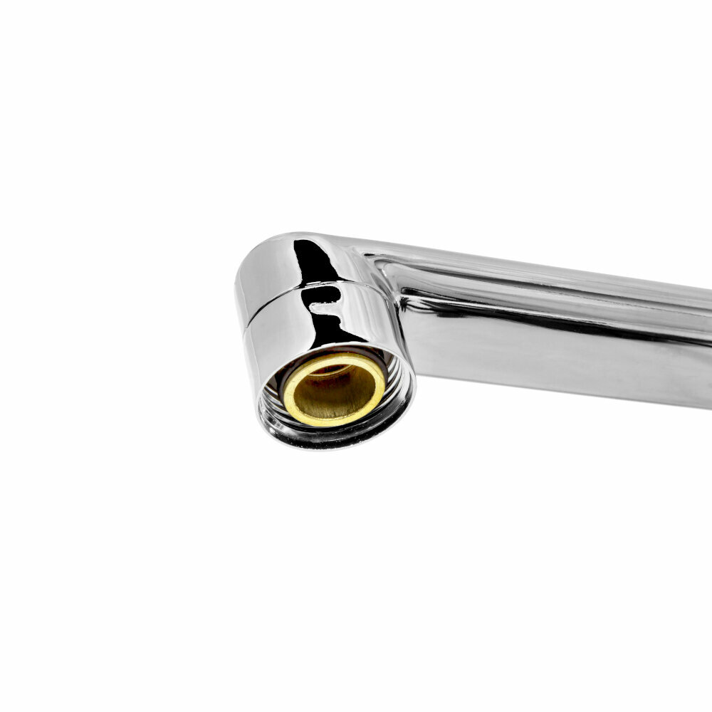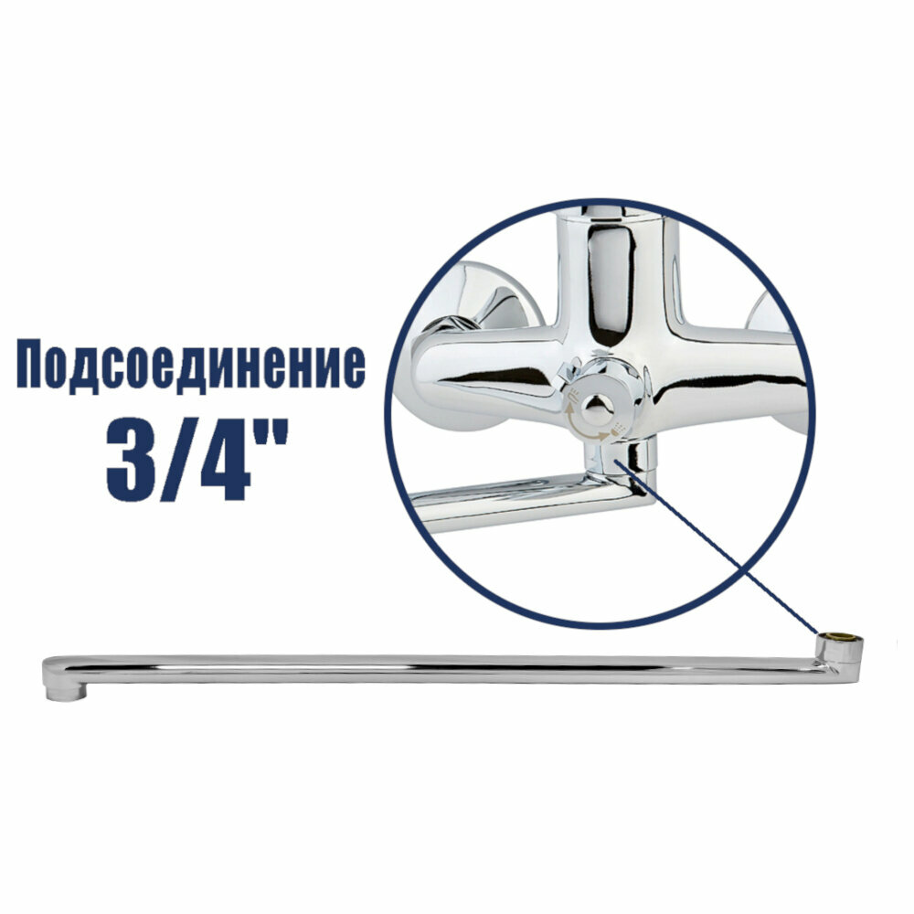 Основным предназначением излива является подача воды, поступающей из смесителя. Представляет собой L-образную хромированную деталь длиной 50 см. Универсальный излив для смесителя изготовлен из стали и имеет хромированное покрытие. Устройство оснащено аэратором.