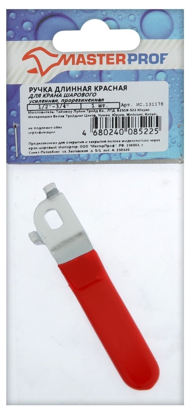 На сегодняшний день товар «ручка длинная усиленная для крана 1/2"-3/4" прорезиненная красная mp-у Masterprof» можно купить с кешбеком в 1 магазине: Яндекс.Маркет