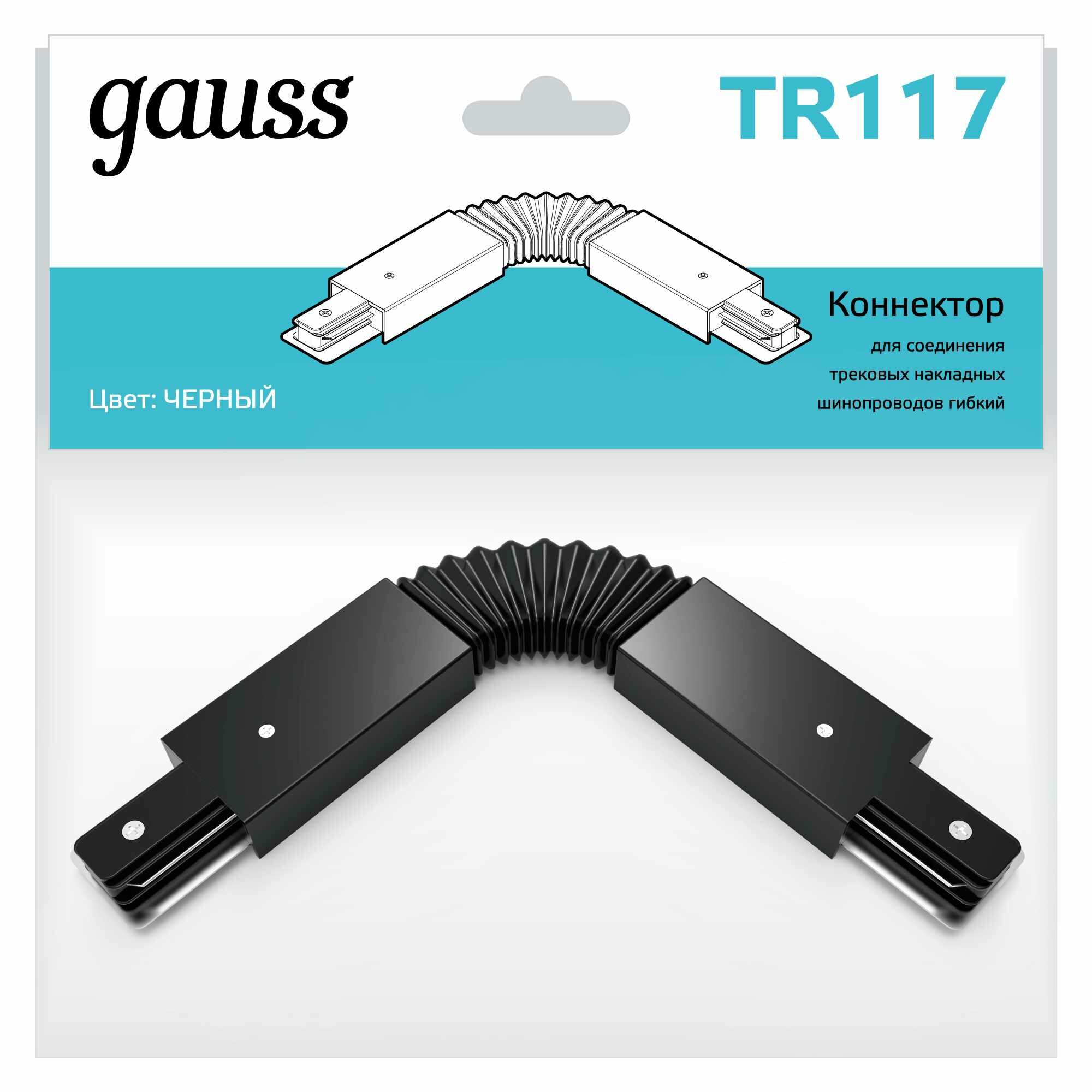 коннектор gauss для трековых шинопроводов гибкий черный tr117