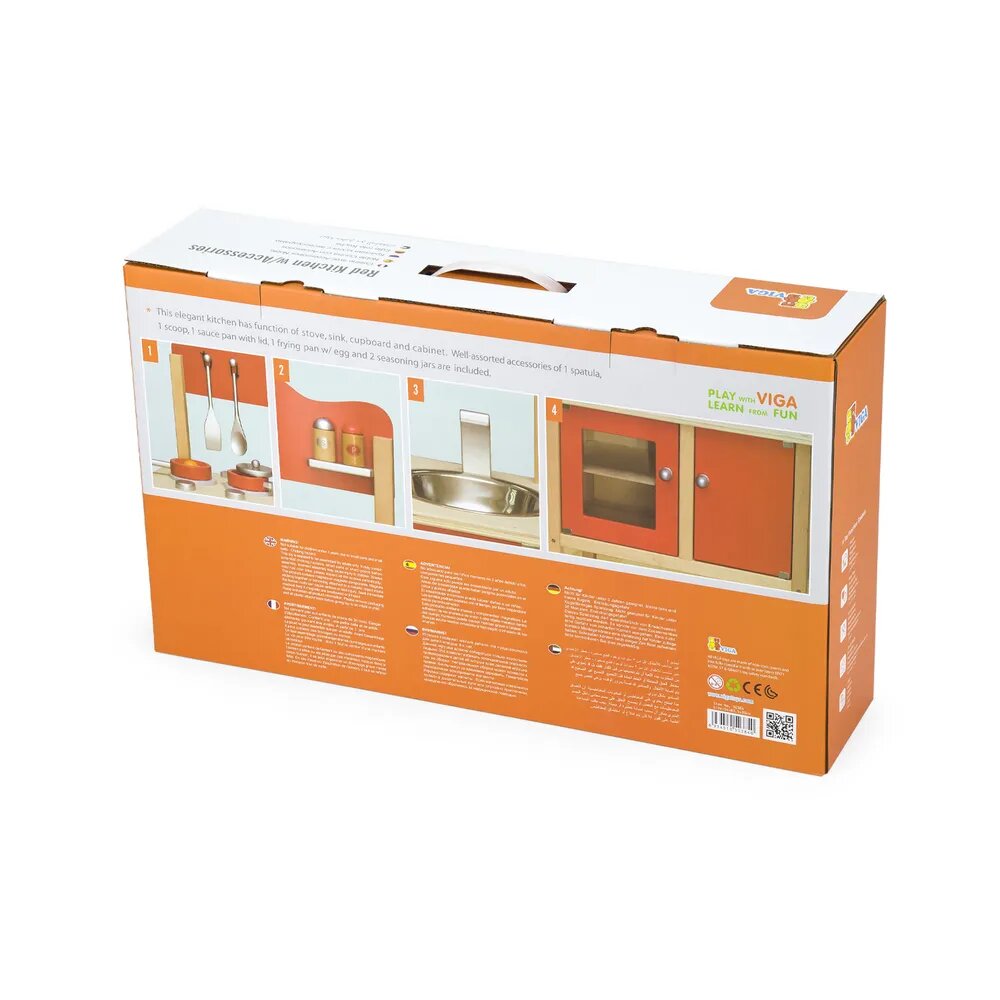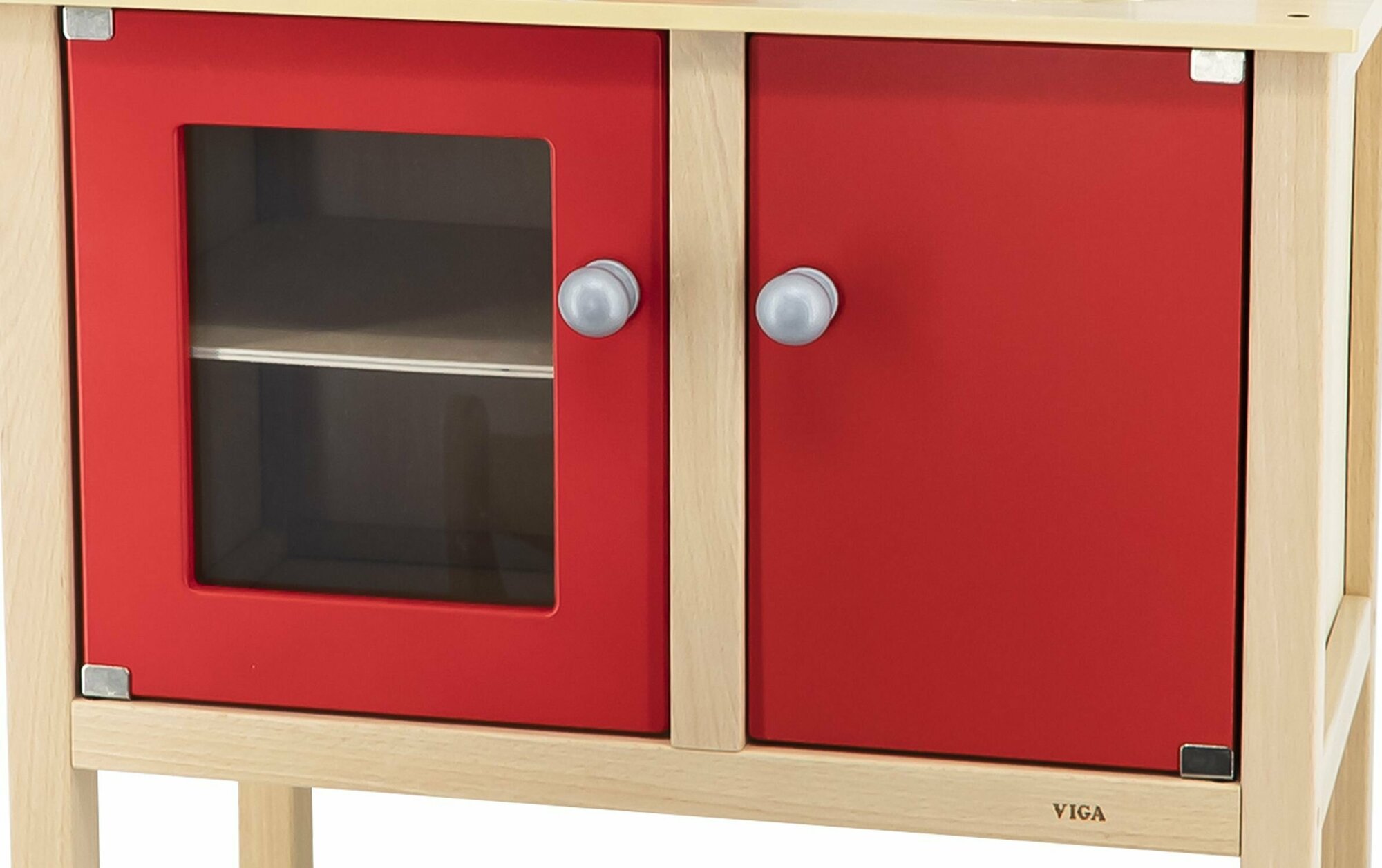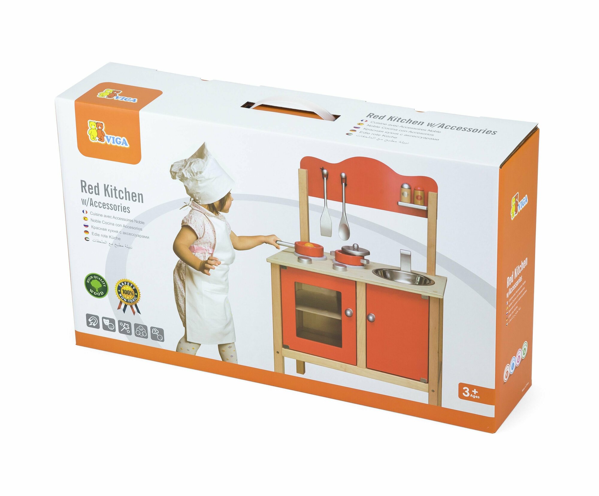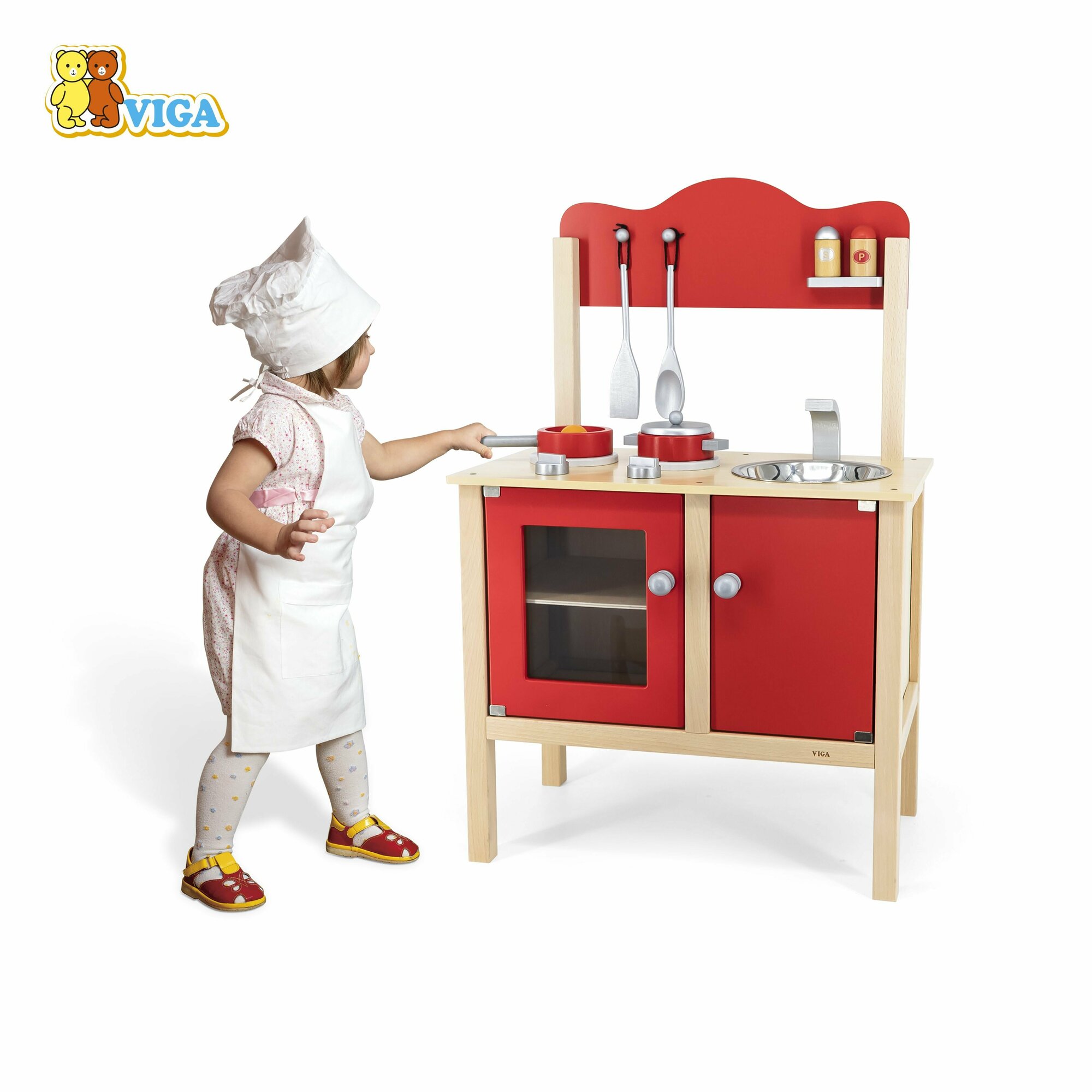 Деревянная кухня от компании Вига-это идеальный комплект для каждого начинающего повара или хозяйки. Пора вынуть белую шапку Босса и приготовить что-то замечательное для всей семьи. Благодаря кухне, дети имеют возможность совершенствовать свои кулинарные навыки. Игра в приготовление еды развивает зрительно-моторную координацию. Предмет мебели своим размером, адаптированный для удобной забавы для маленького ребенка. Была сделана из древесины, благодаря чему будет служить много лет. Элементы окрашены в красный цвет и порадует каждого. Все сделано из лакированного дерева и окрашена не токсичными красками в яркие цвета, которые порадуют любого пользователя, и они дадут много радости, веселья. Нашим приоритетом является безопасность и качество нашего товара, поэтому мы заботимся о том, чтобы краски, которыми мы рисуем наши игрушки не были токсичными и отвечают стандартам безопасности ( EN71 и ASTM).