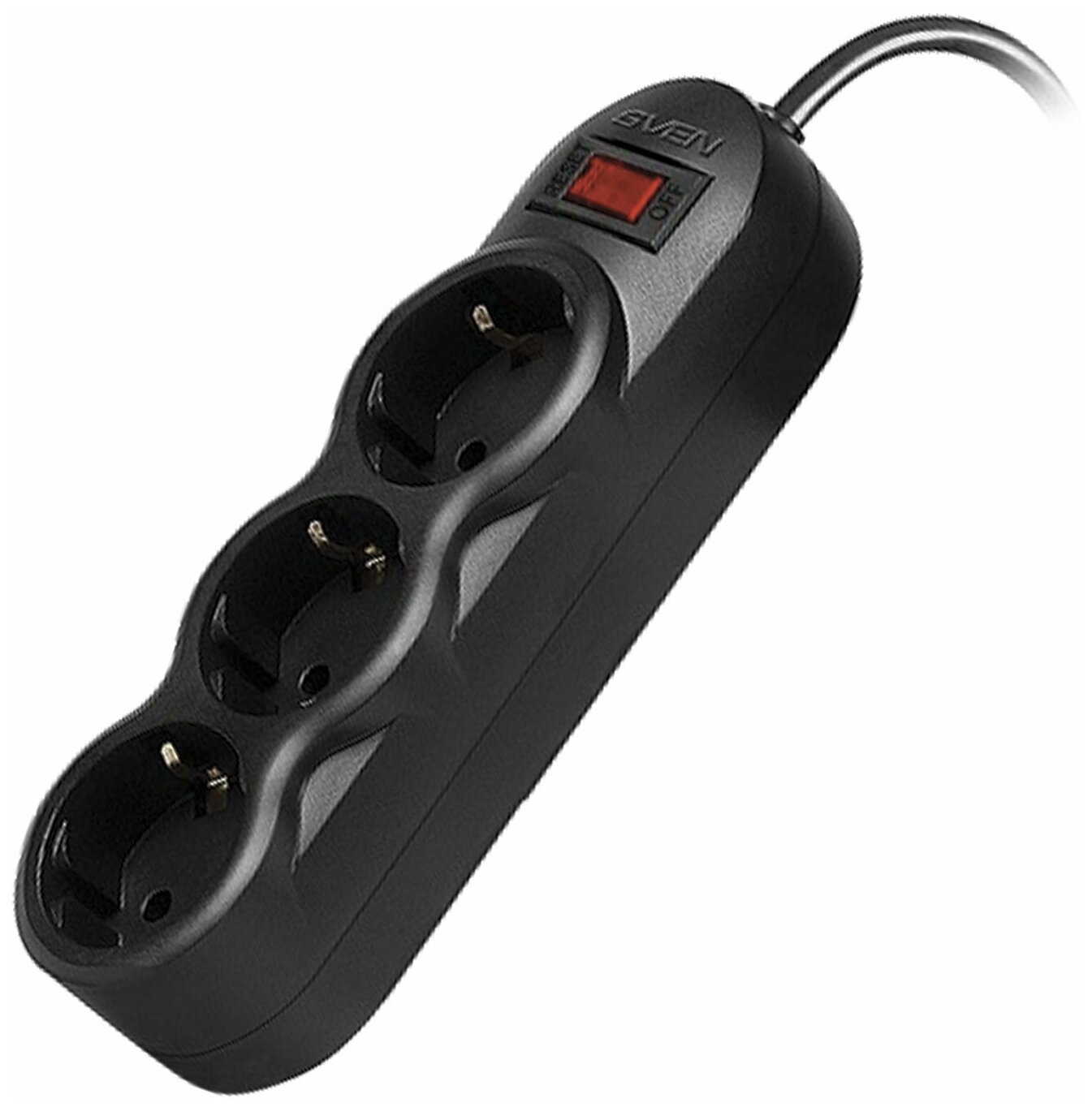 Сетевой фильтр Sven SF-03L 3.0м (3 розетки) черный SF-03L (3 м, 3 розетки) (SV-015039)