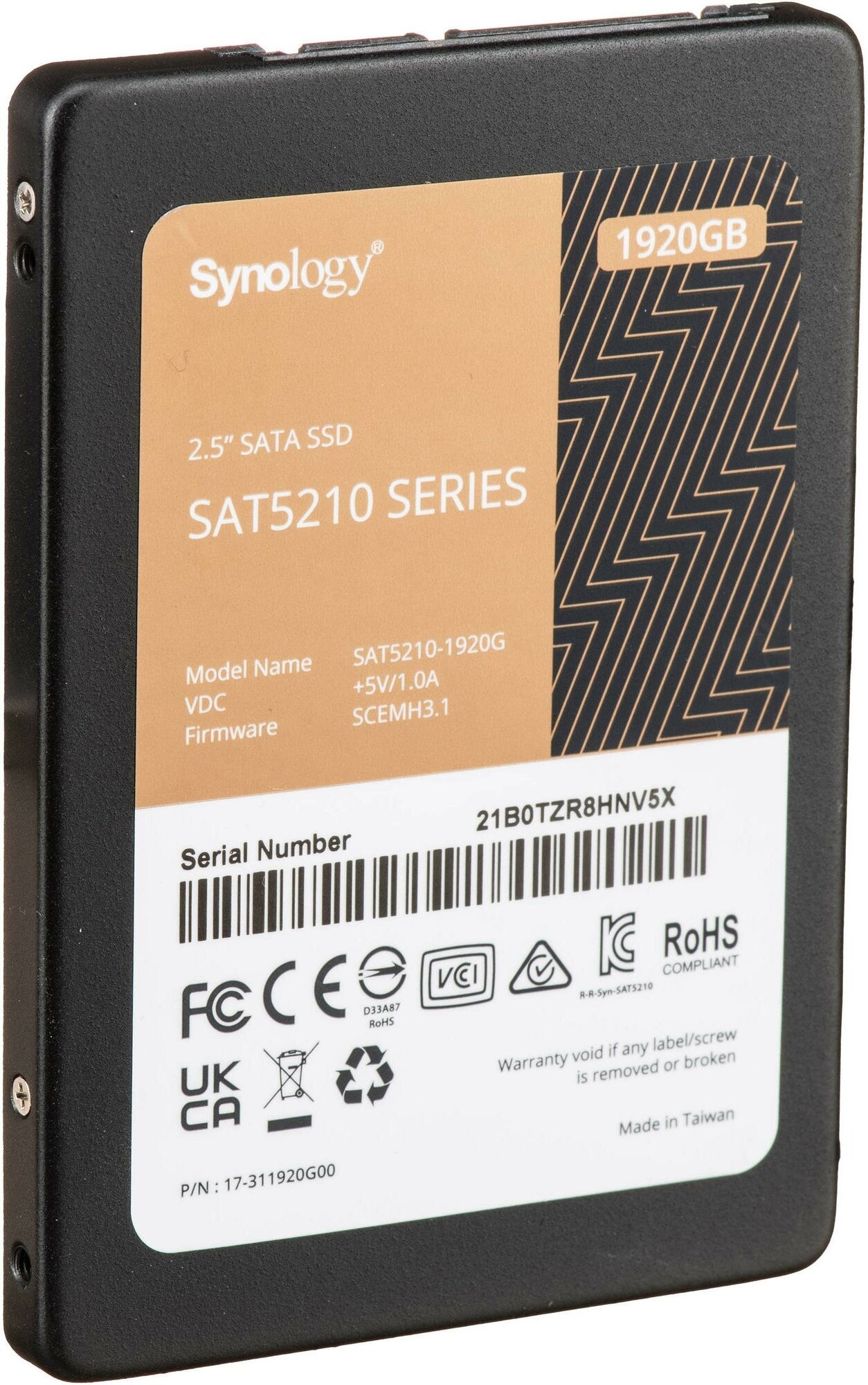 Накопитель SSD Synology SATA2.5" 1.92TB 6GB/S (SAT5210-1920G) (размер: 70х7х100мм)