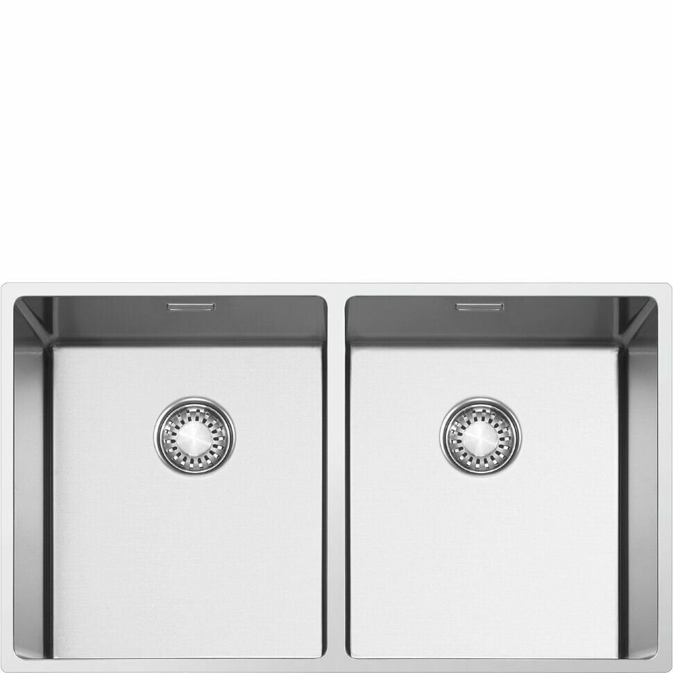 Мойка Smeg может быть установлена тремя разными способами, что позволяет разместить ее в любом интерьере. В комплект входят крепления как для монтажа под столешницу, так и над ней. Две глубокие чаши позволяют комфортно мыть посуду, замачивать противни или споласкивать и размораживать продукты.