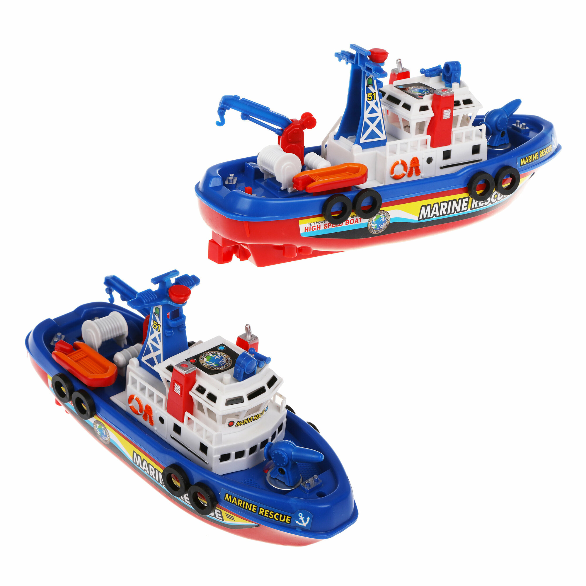 Электрифицированный кораблик запускается и работает только в воде. Игрушка снабжена небольшой водяной пушкой. В нижней задней части расположено рулевое устройство. Кораблик следует запускать только в закрытых водоемах.