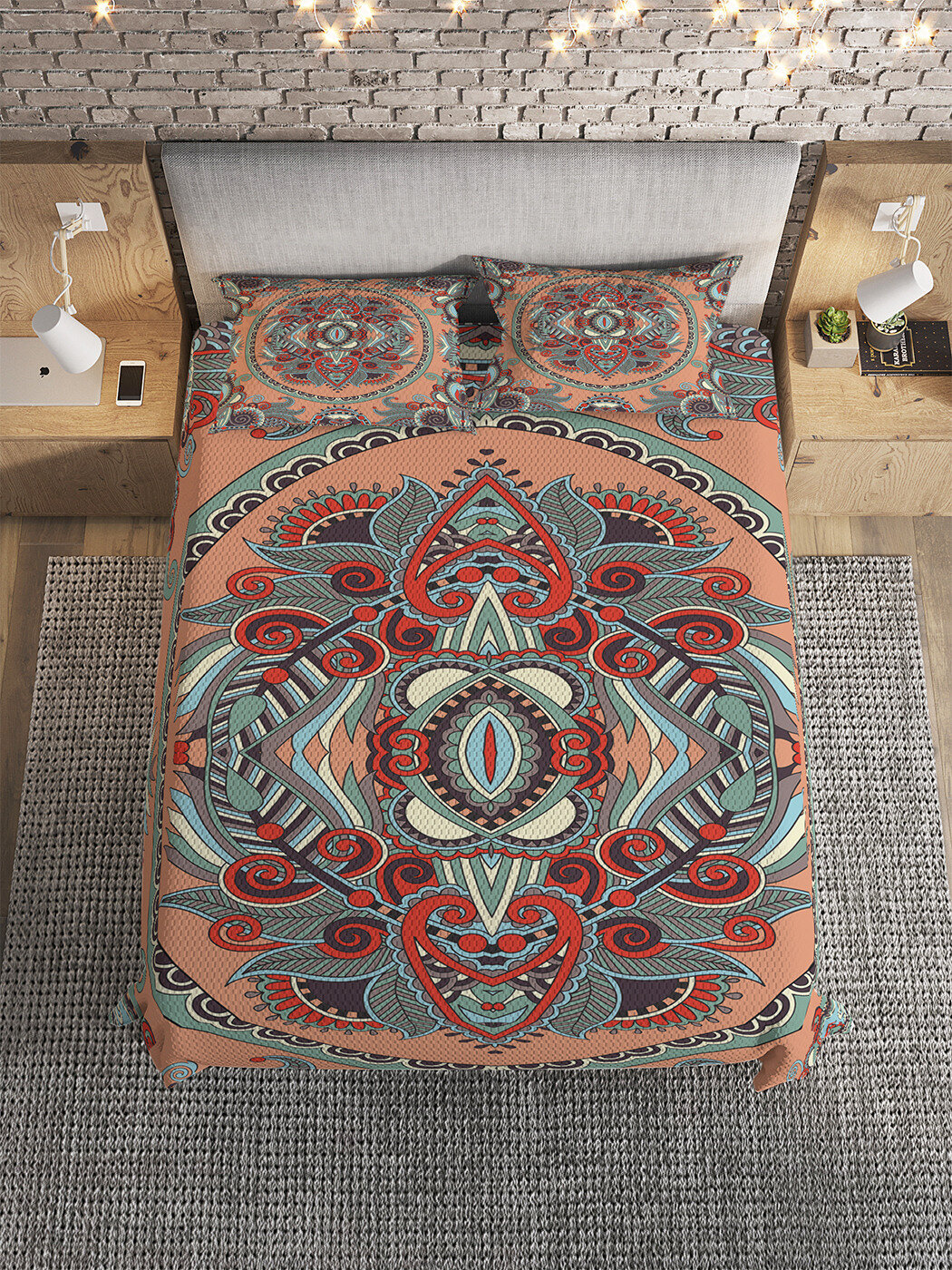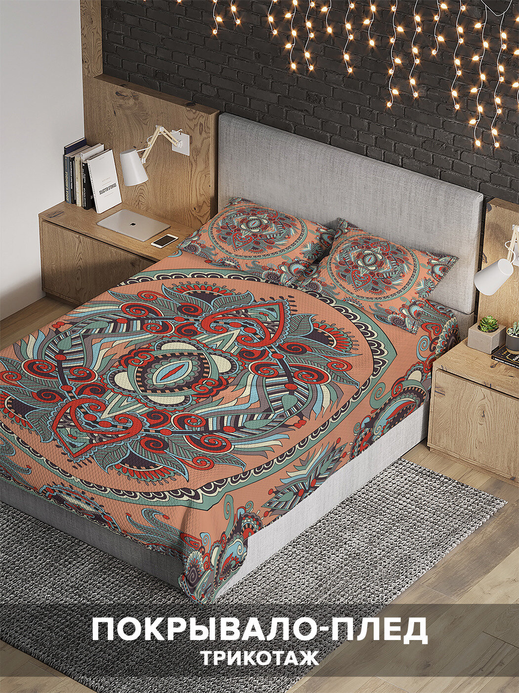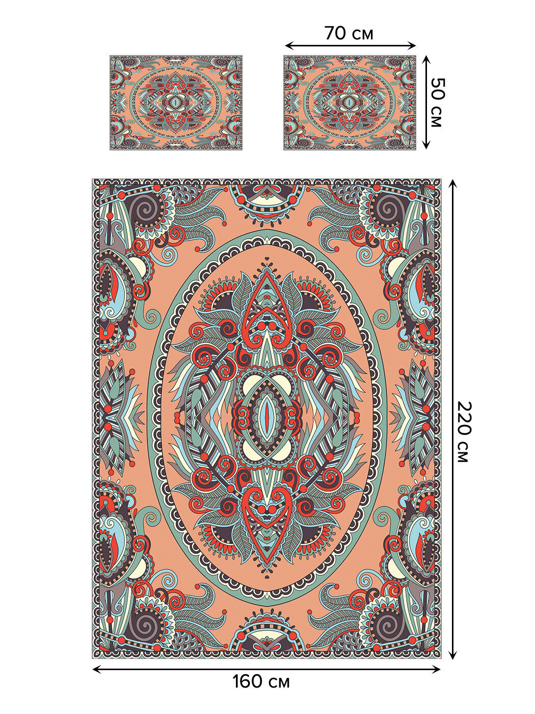 Модель: Покрывало на 1.5-спальную кровать Узорчатый орнамент 220х160 и две наволочки 70x50