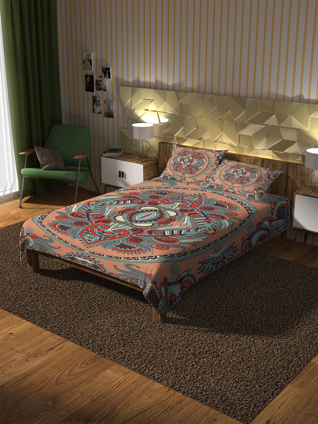 Вы можете создать единый стиль вашей спальни, подобрав шторы с аналогичным принтом под брендом JoyArty.