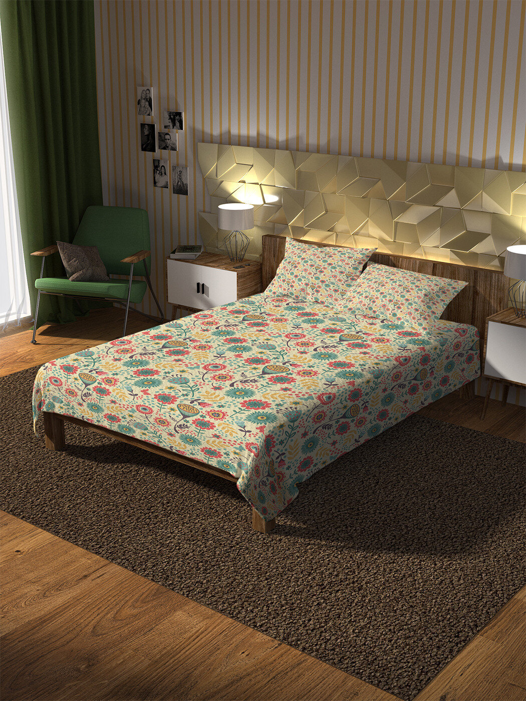 Модель: Покрывало на 2-спальную кровать Причудливые цветы и бабочки 235х220 и две наволочки 70x50