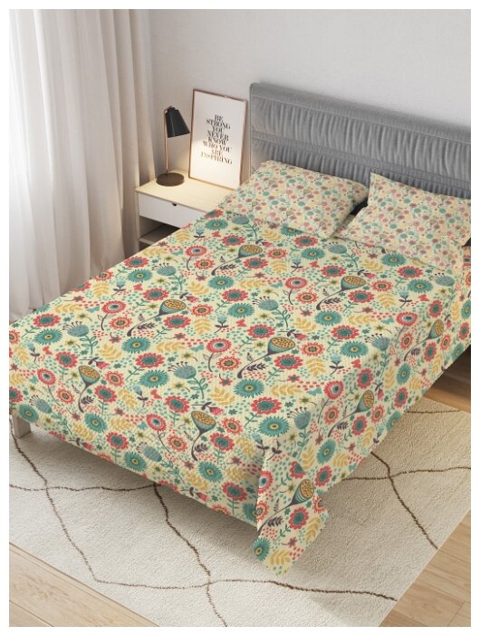 Сервис сравнения цен СкидкаГИД предлагает сравнить цены на товар «Покрывало с чехлами Ambesonne bcsl_34046 220x235 см желтый Покрывало на 2-спальную кровать Причудливые цветы и бабочки 235х220 и две наволочки 70x50 (размер: евростандарт)»