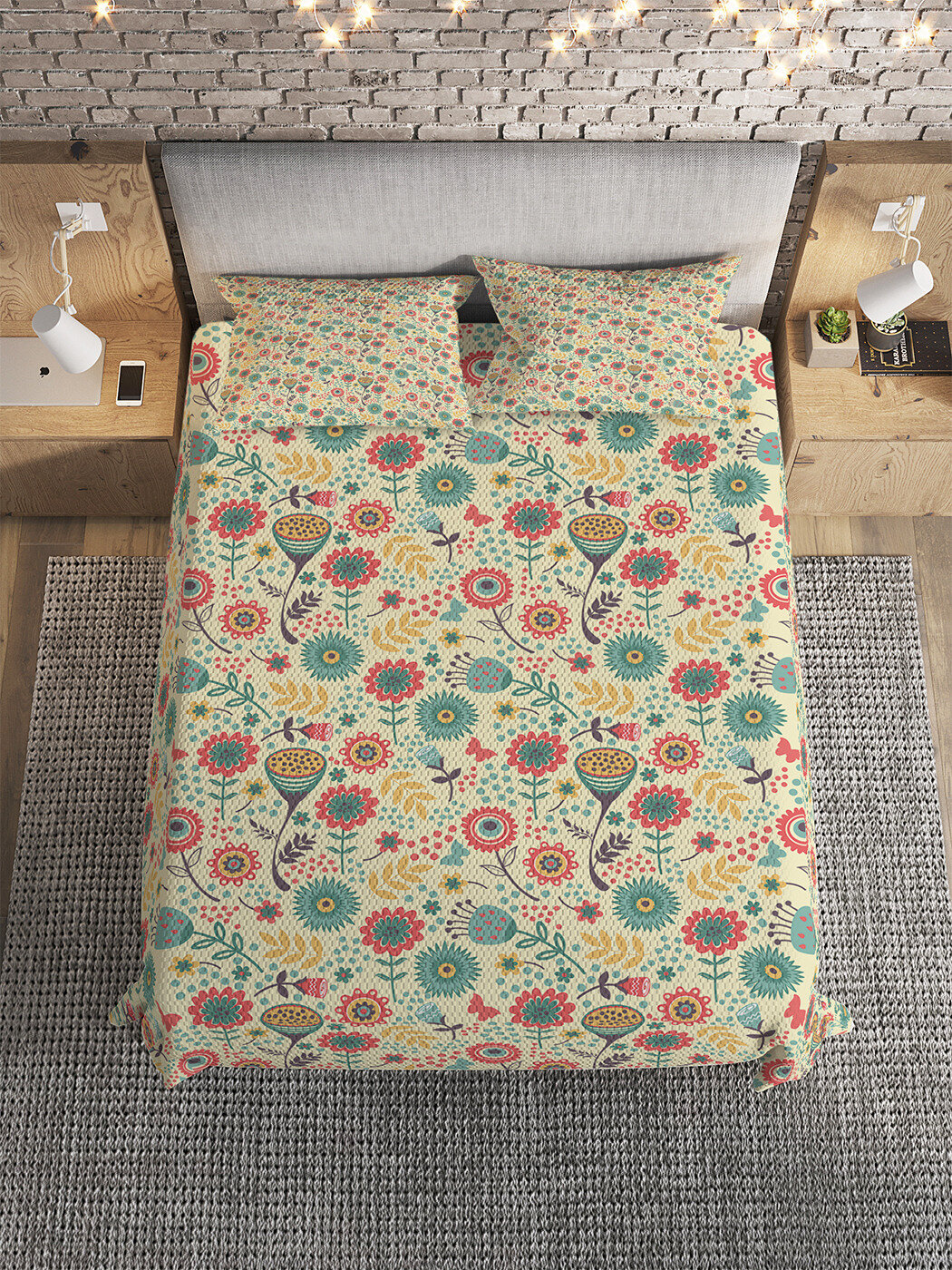 Покрывало с чехлами Ambesonne bcsl_34046 220x235 см желтый Покрывало на 2-спальную кровать Причудливые цветы и бабочки 235х220 и две наволочки 70x50 (размер: евростандарт)