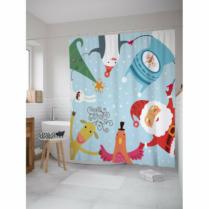 Шторка-занавеска для ванной JOYARTY Штора занавеска для ванной Веселый хоровод из сатена 180х200 см с крючками