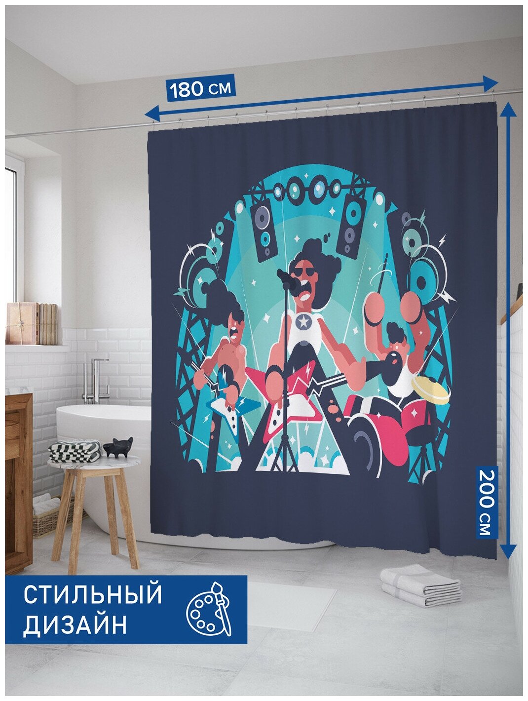 Шторка-занавеска для ванной JOYARTY Штора занавеска для ванной Рок-группа из сатена 180х200 см с крючками