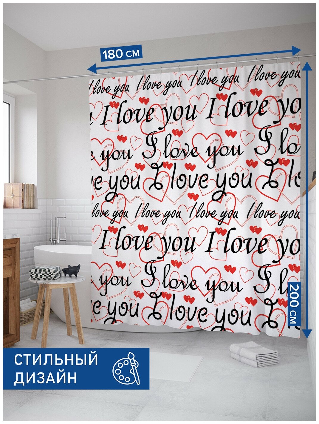 Шторка-занавеска для ванной JOYARTY Штора занавеска для ванной Я тебя люблю из сатена 180х200 см с крючками